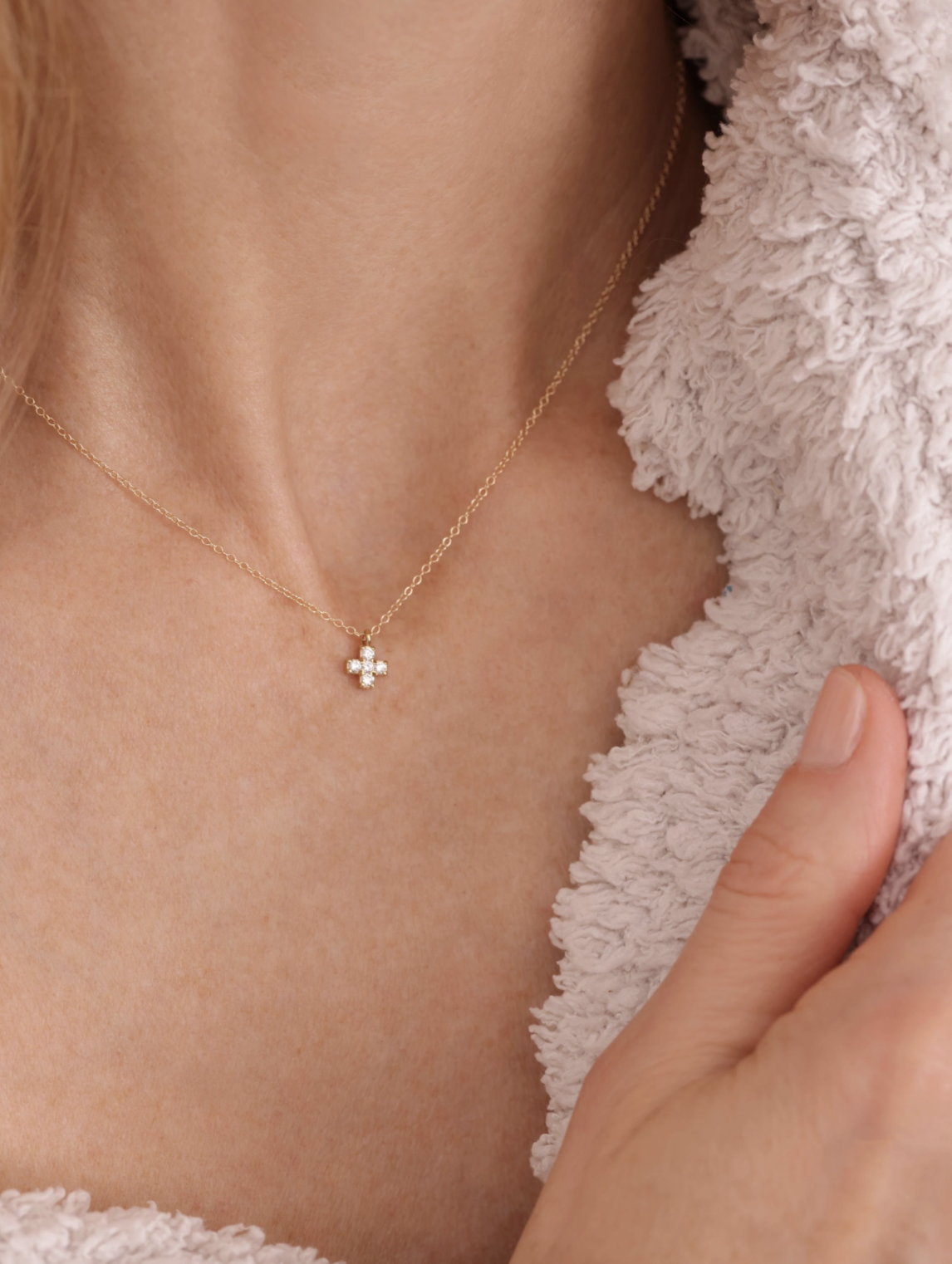 14K GOLD & DIAMOND SIGNATURE CROSS NECKLACE