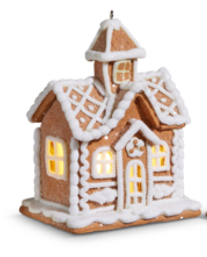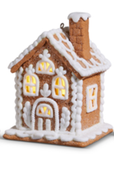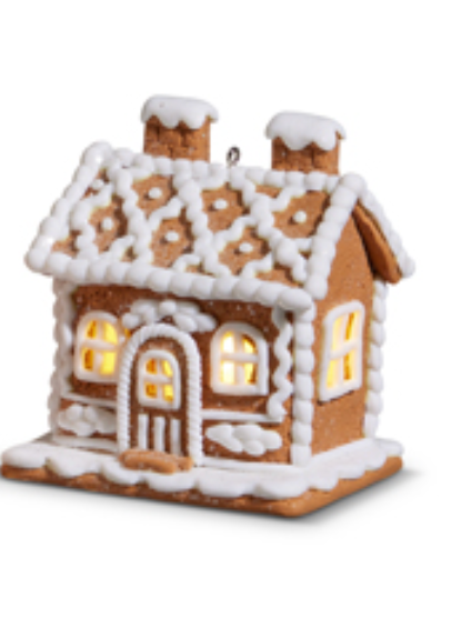 4.25" LIGHTED GINGERBREAD HOUSE ORNAMENTS