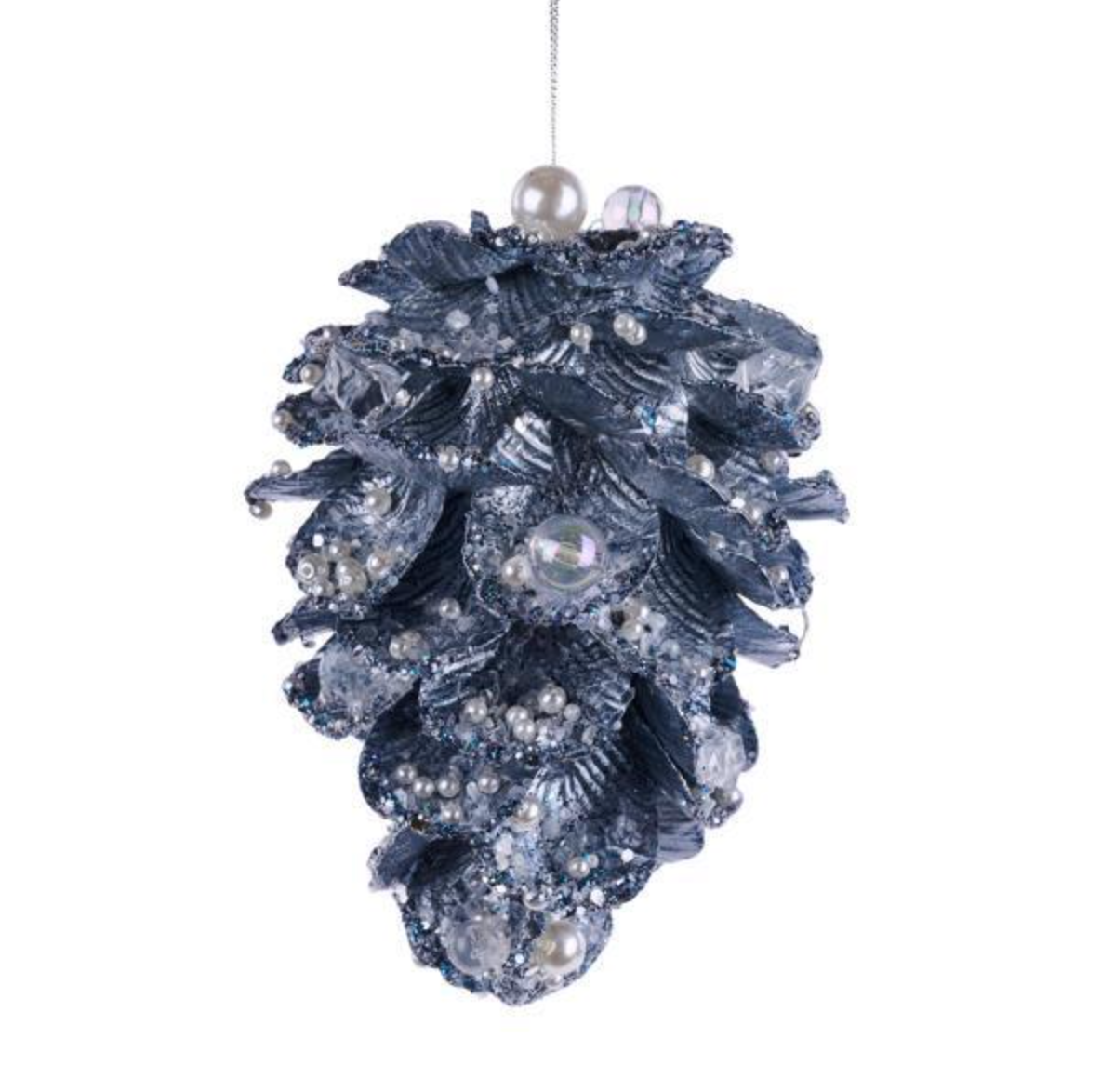 6" JEWEL PINECONE ORNAMENT-BLUE