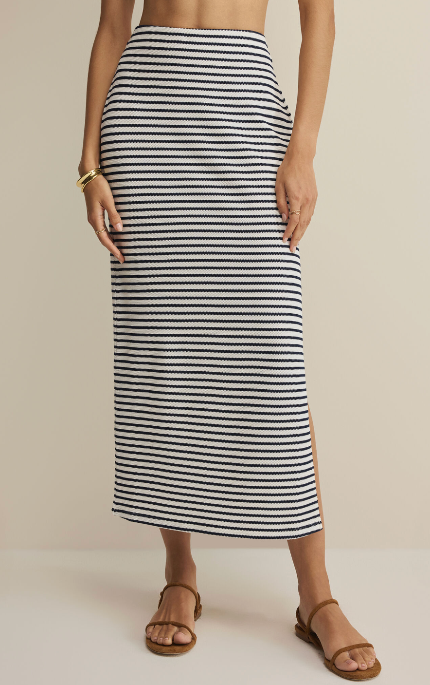 AINSLIE STRIPE MIDI SKIRT-ECLIPSE