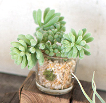 ARTIFICIAL SUCCULENTS IN GLASS CONTAINERS