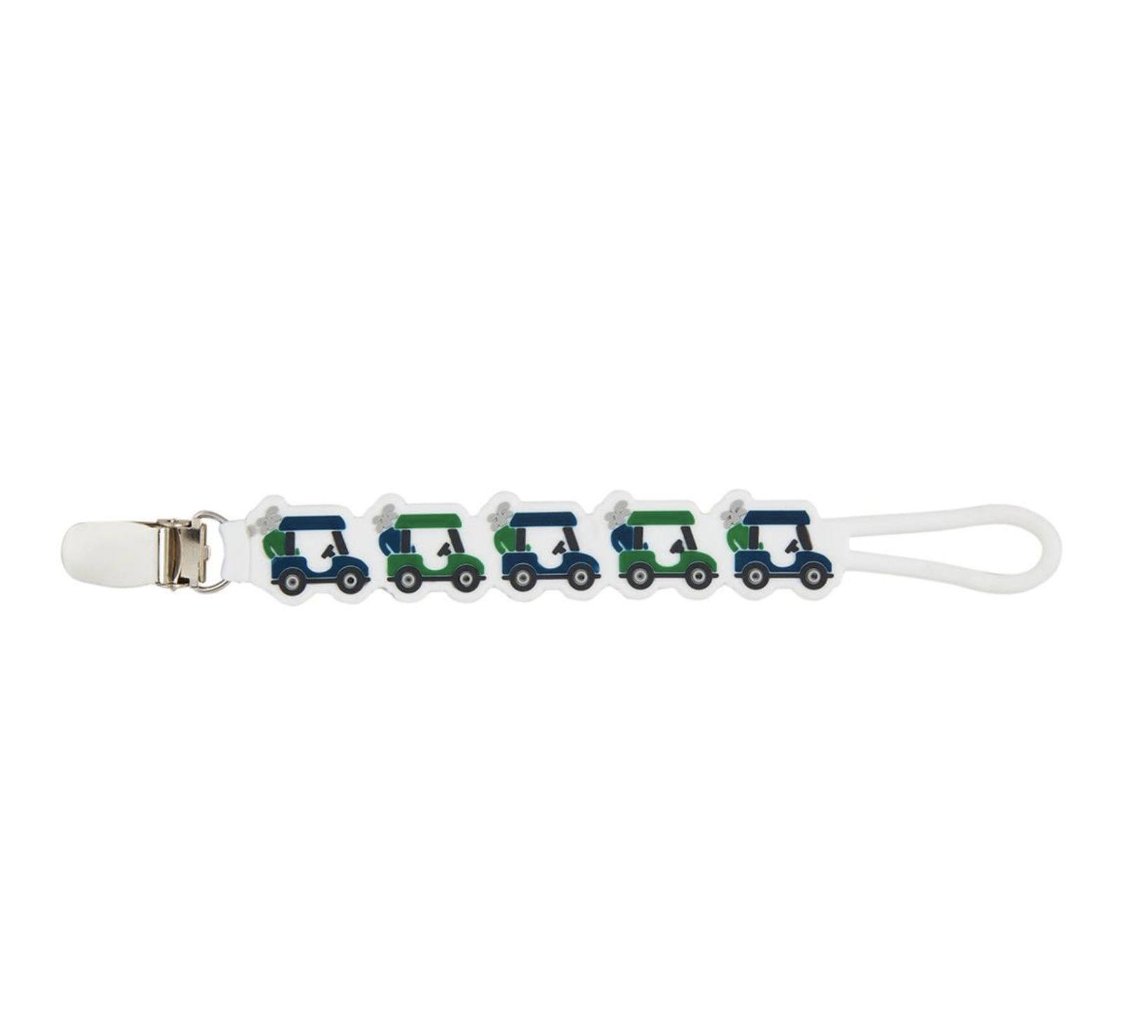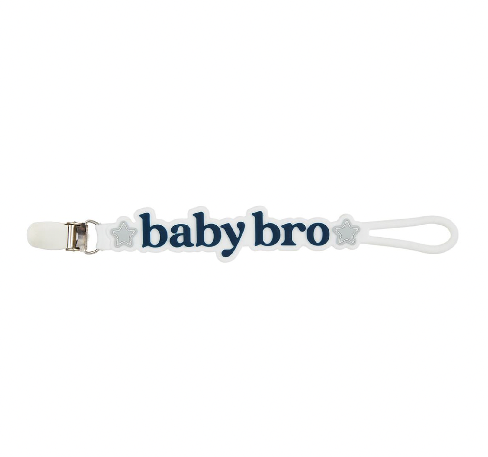Clip-on BPA free silicone pacy strap. Ages up to 18M.