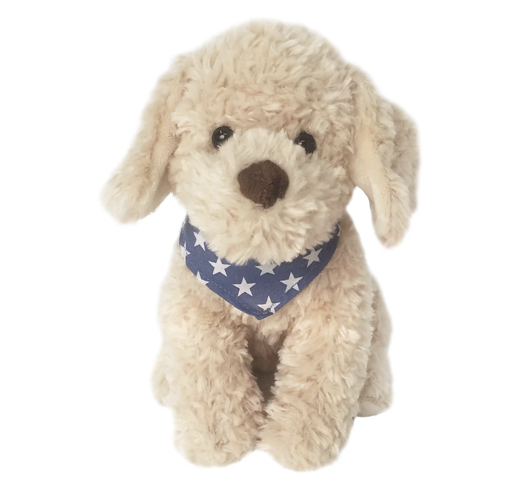 Meet Bentley the Golden Doodle! Super sweet with a novel blue star bandana. He is sure to put a smile on anyones face!