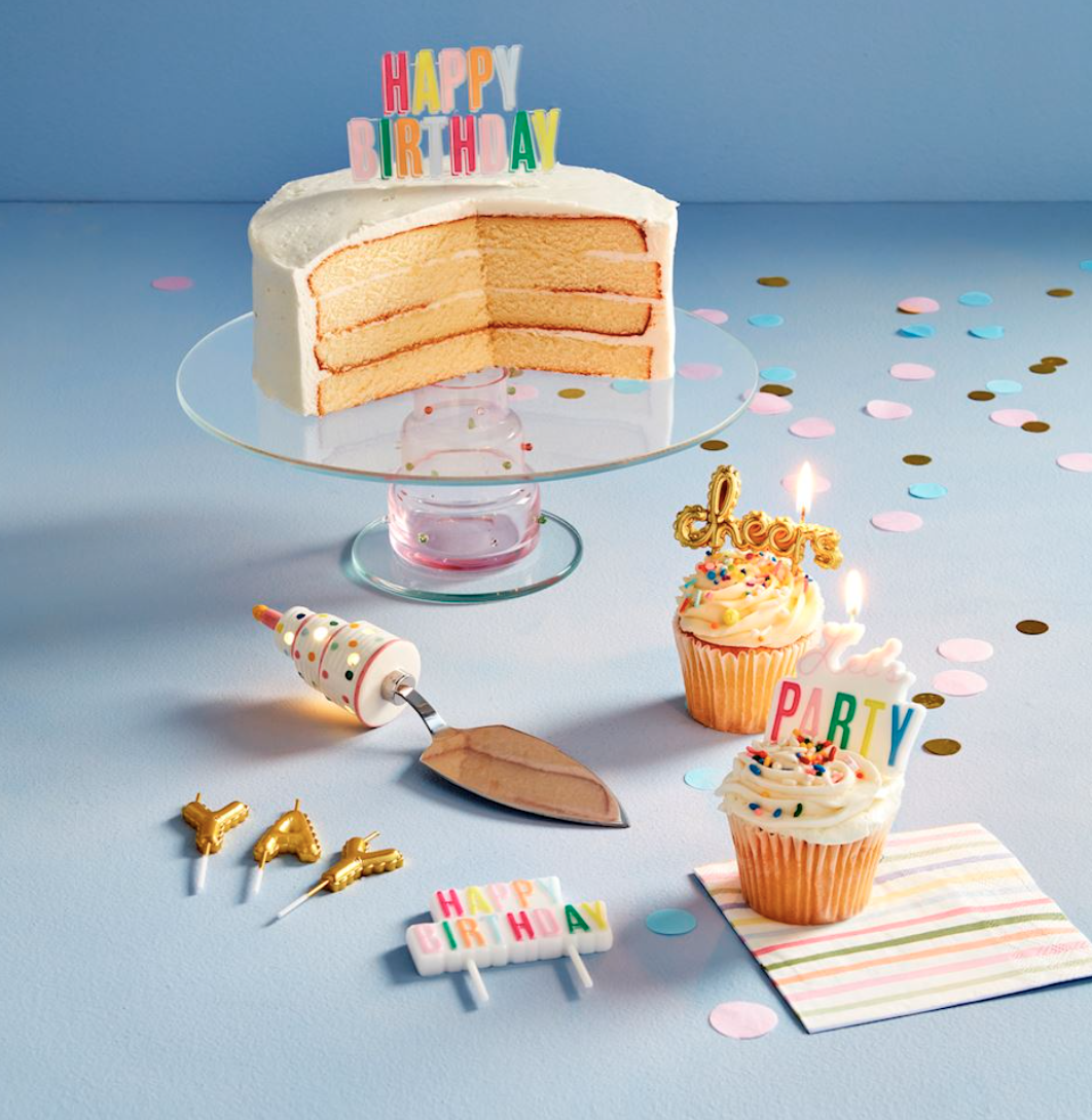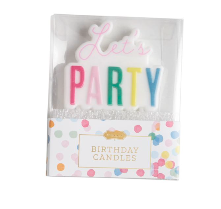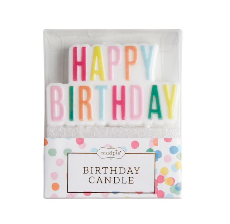 Hand-painted or foiled wax birthday candle on plastic stakes.