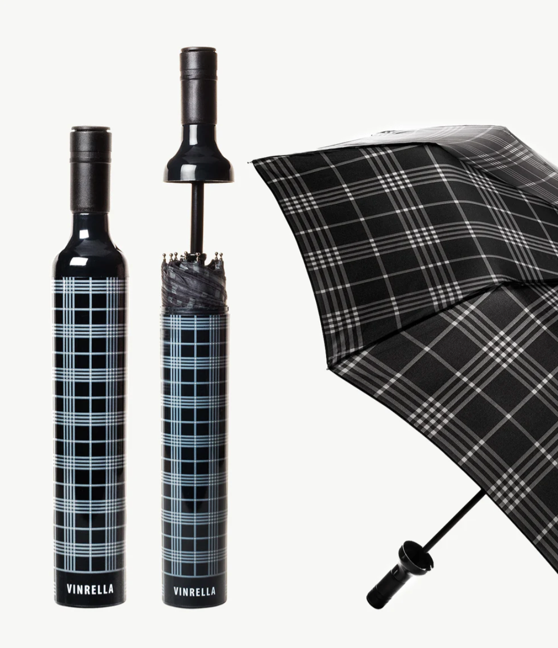BLACK PLAID BOTTLE UMBRELLA
