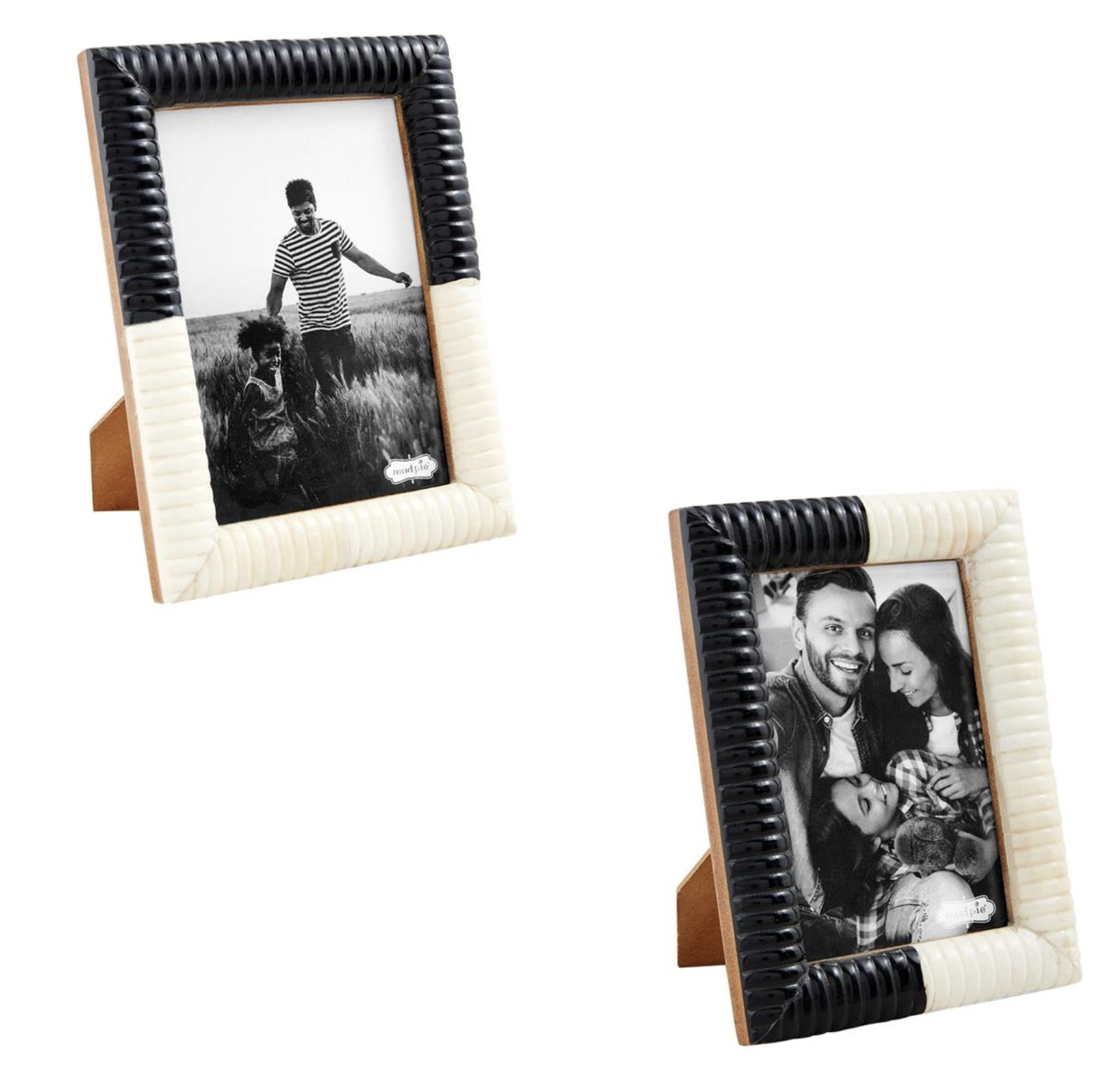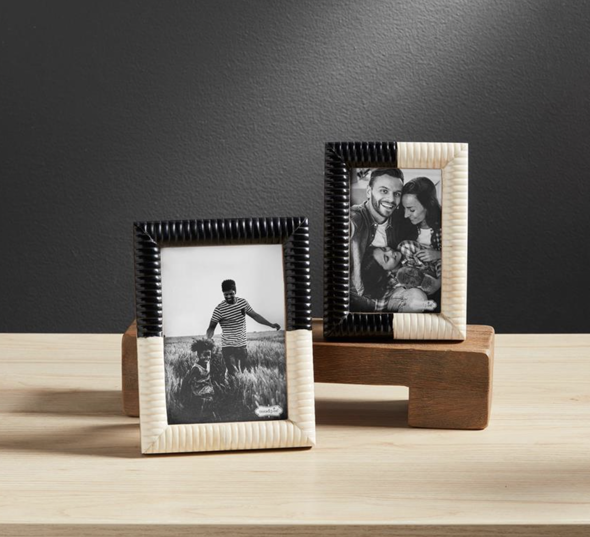 Ribbed bone 4" x 6" or 5" x 7" frame. Easel back.