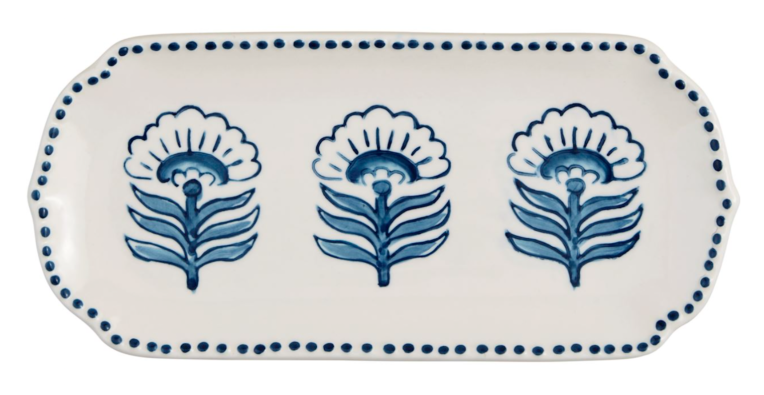 Hand-stamped stoneware everything tray with hand-painted rim.