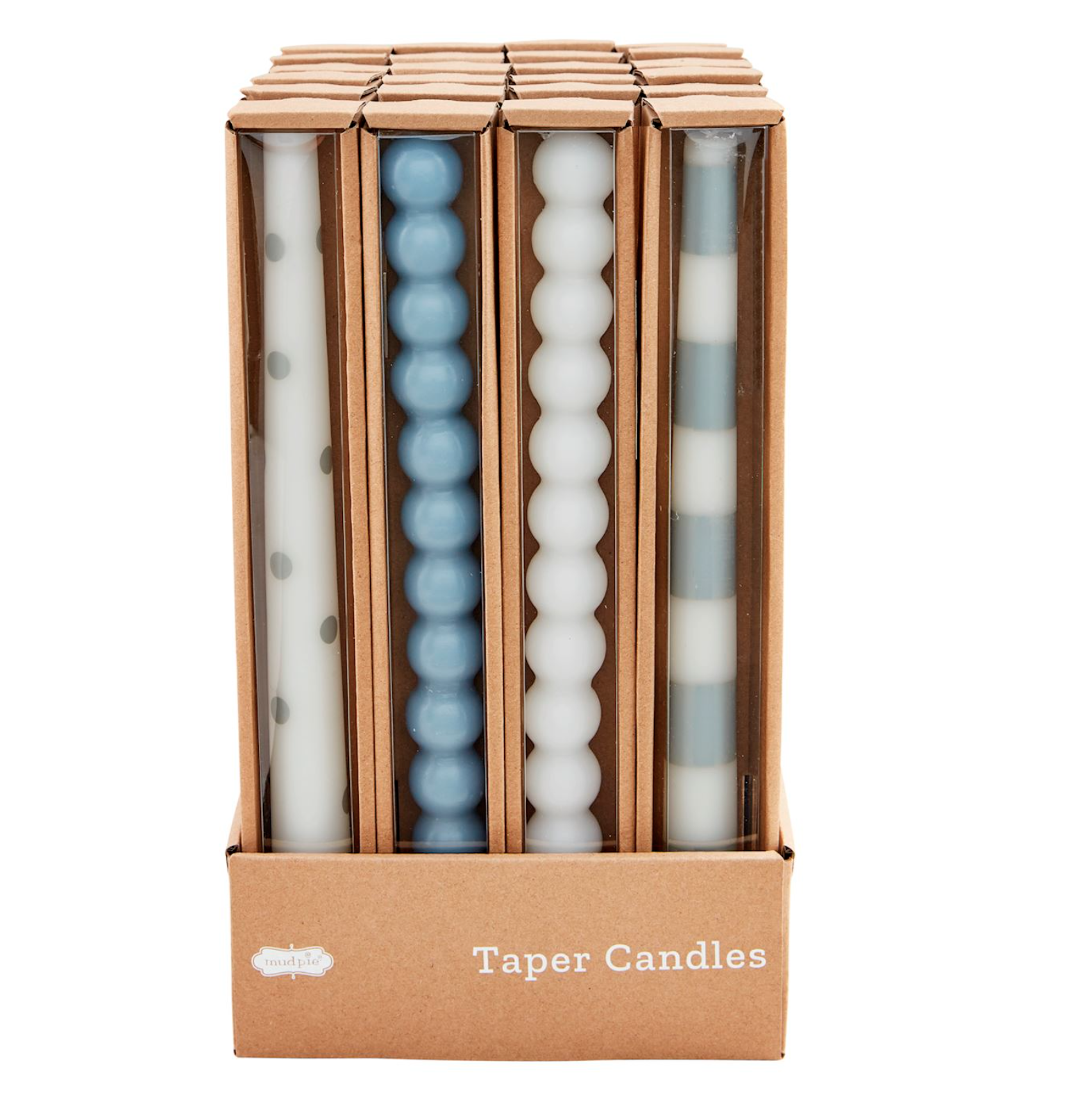 Hand-painted wax taper candles. Comes gift boxed in kraft displayer