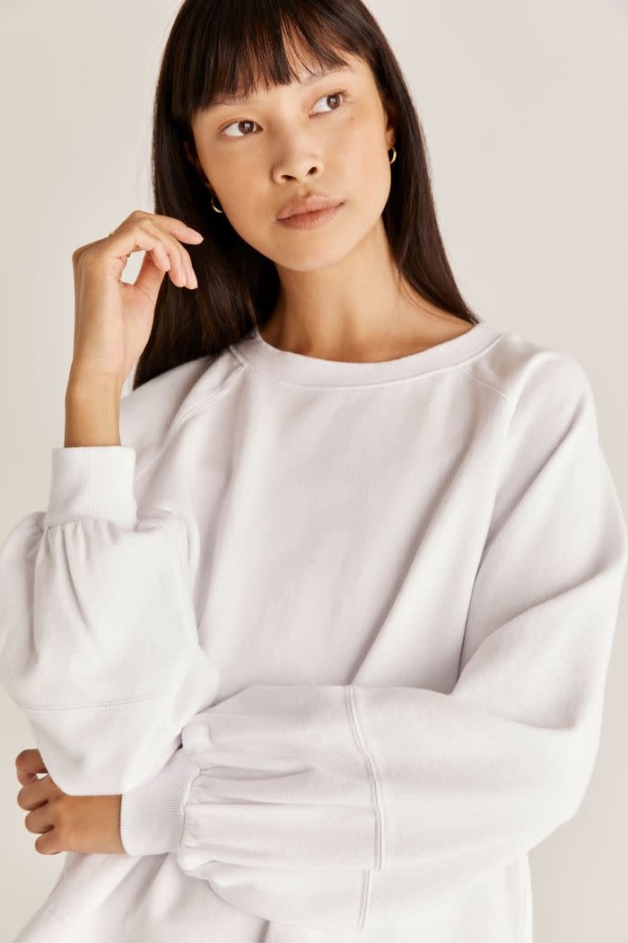 We can't get enough of the Blythe Washed Sweatshirt in our Cotton French Terry fabric, and it's a great way to start off your spring wardrobe. Features include an exposed stitch detail throughout, and a billowy sleeve. Fabric Content: 100% Cotton