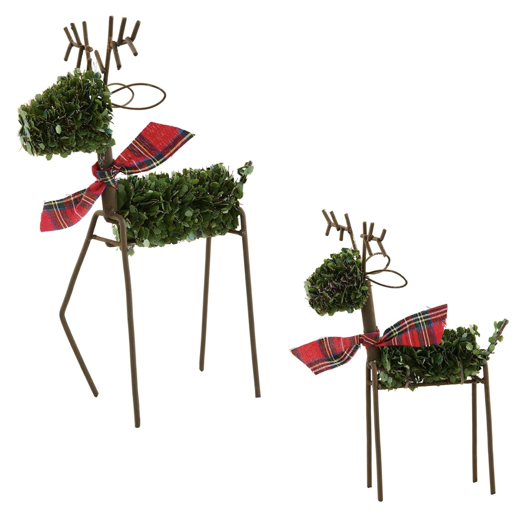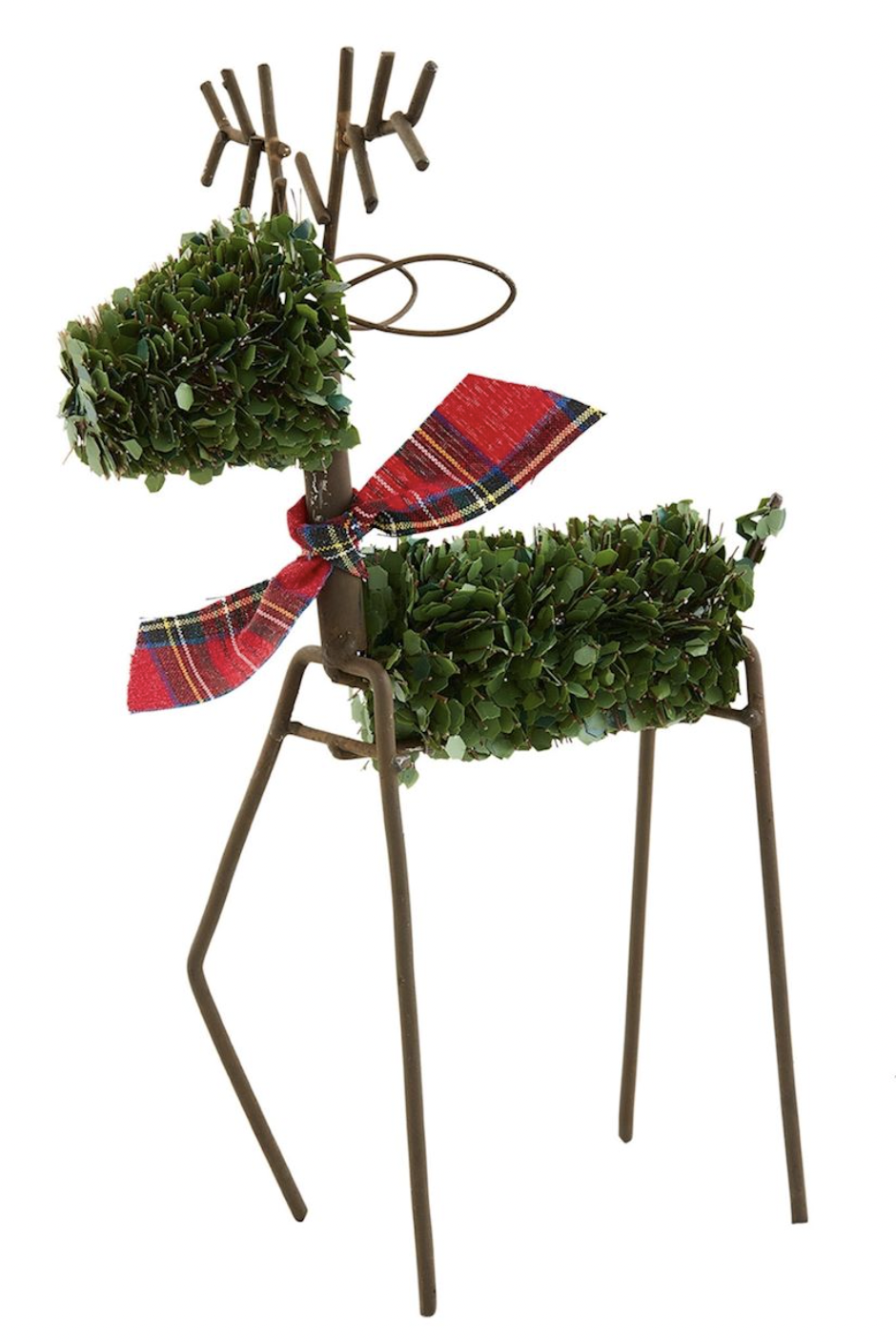 Faux boxwood reindeer with iron antlers and legs