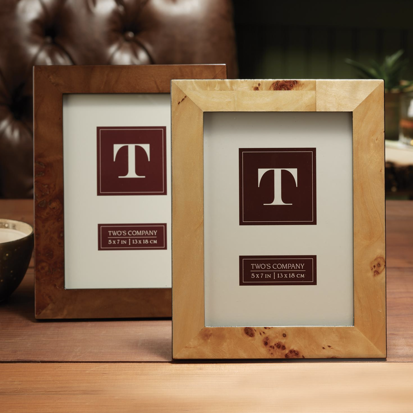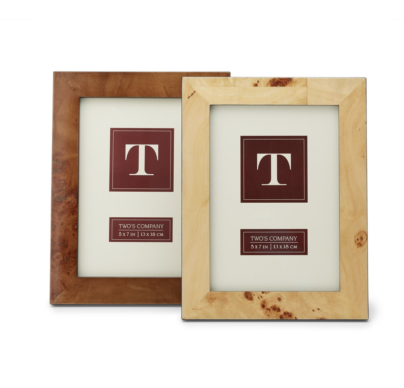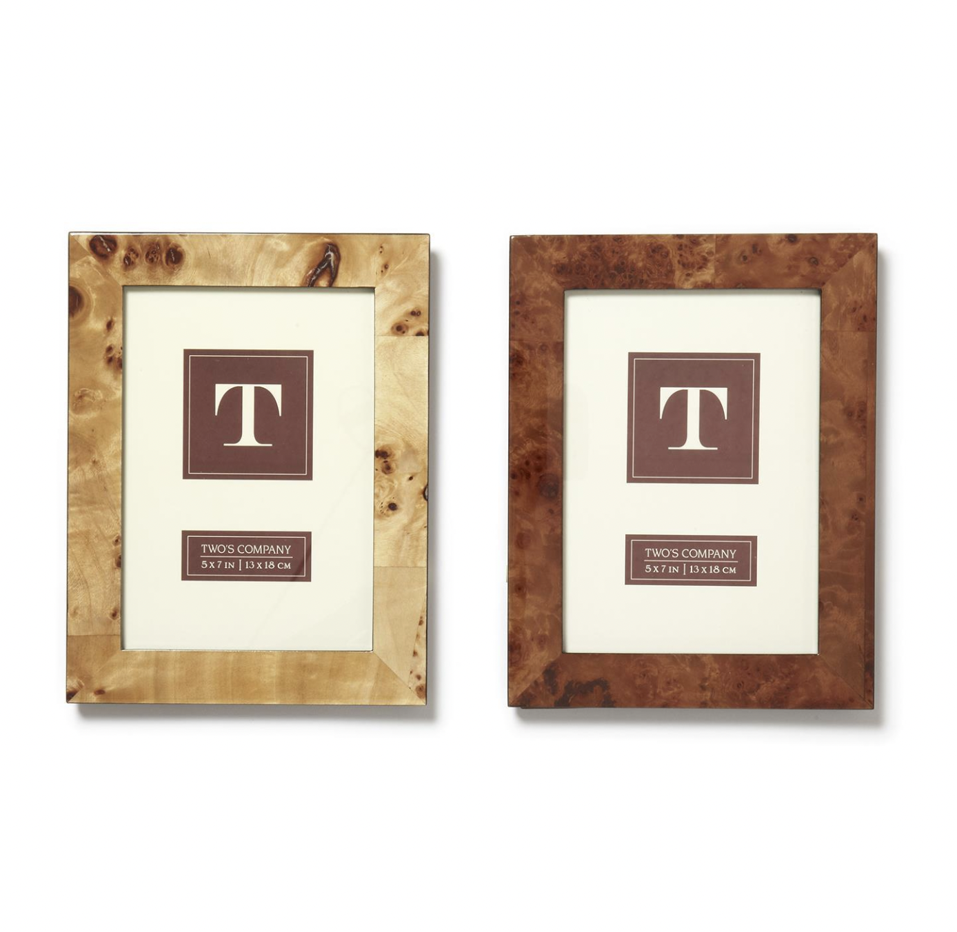 Burled Wood 5" x 7" Photo Frame in Gift Box Assorted 2 Colors: Light Brown and Dark Brown (color and grain variations are natural characteristics of material) - Veneer/Glass/MDF