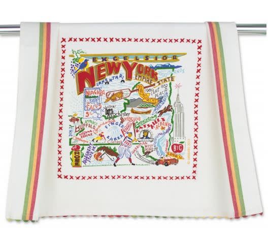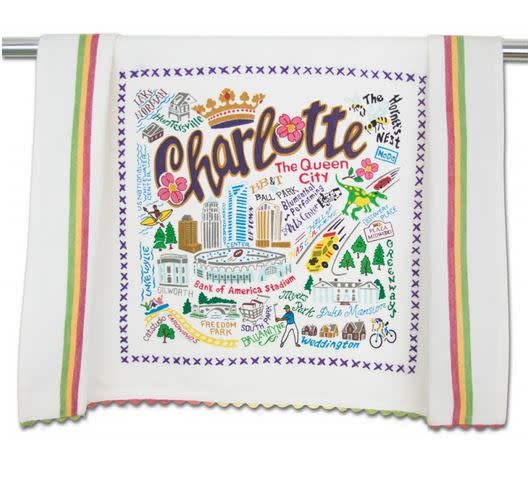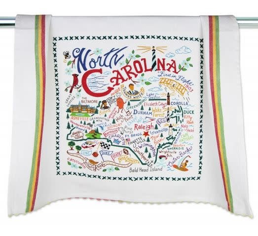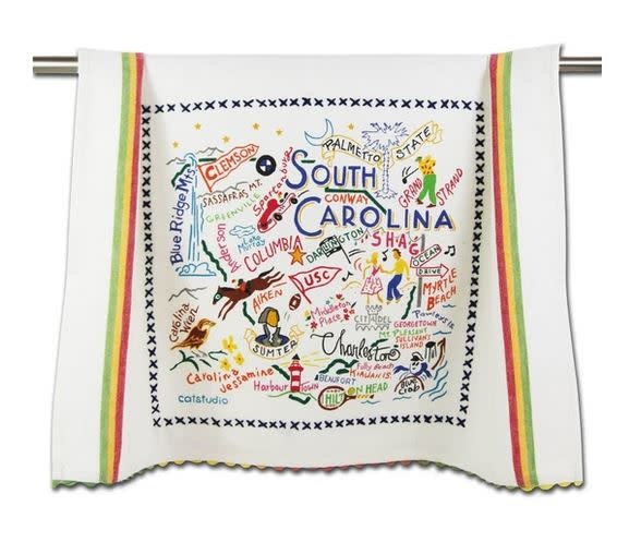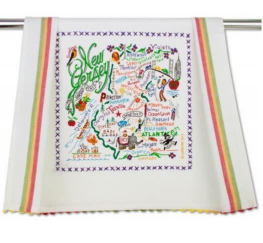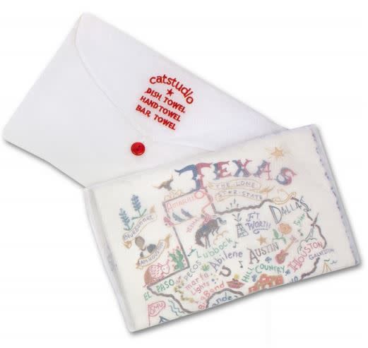 The design is silk-screened, then framed with a hand embroidered border on a 100% cotton dish towel / hand towel / guest towel / bar towel. Delightfully presented in a fab organdy re-usable pouch!