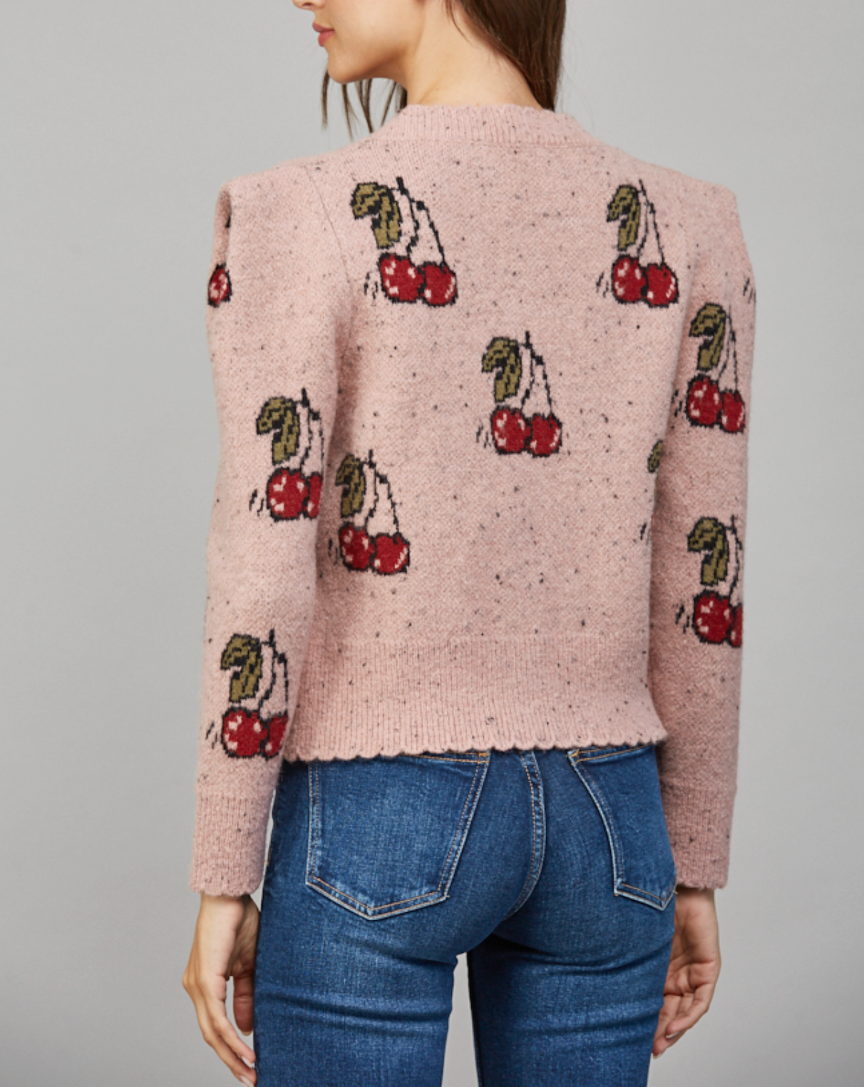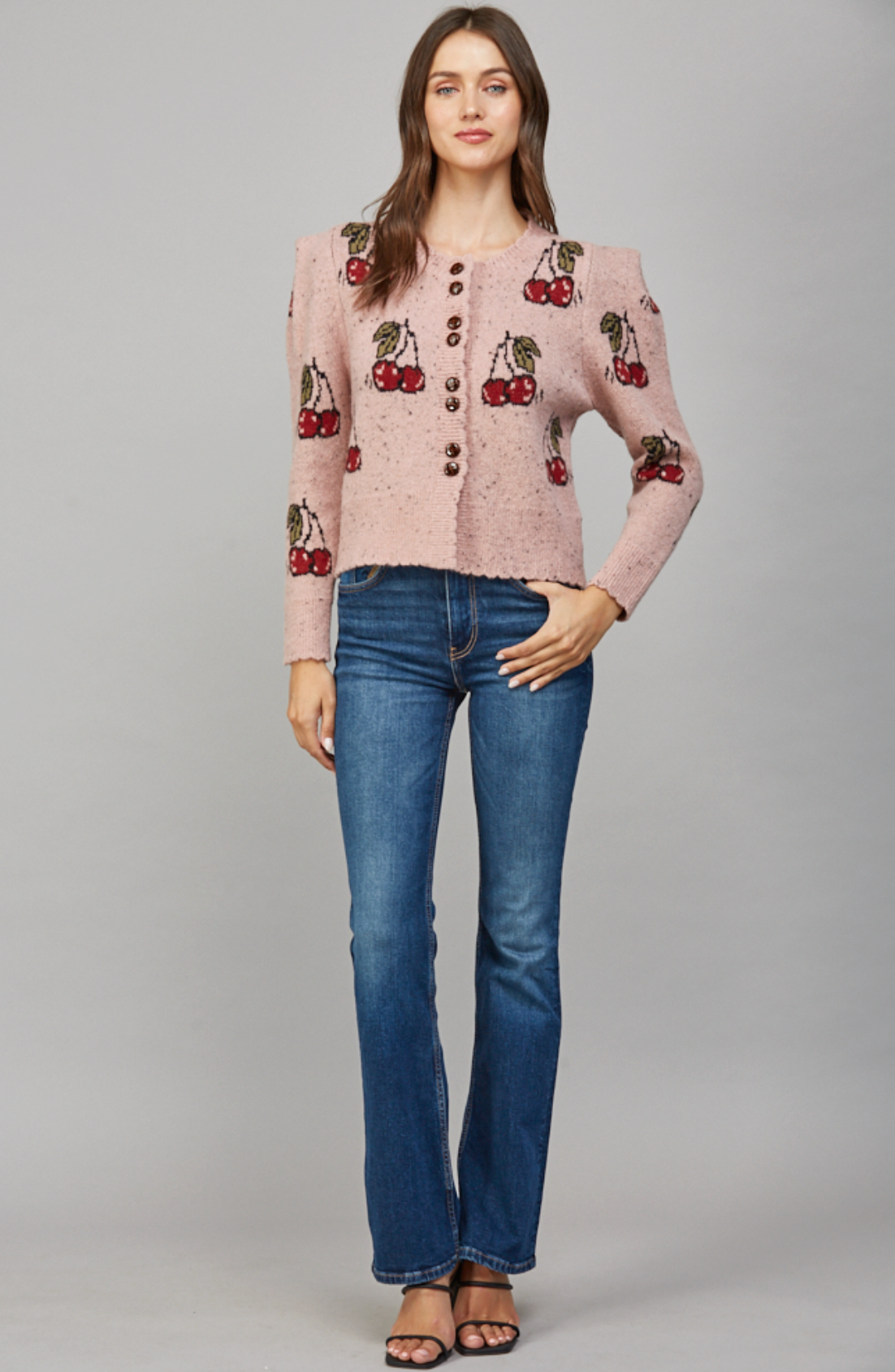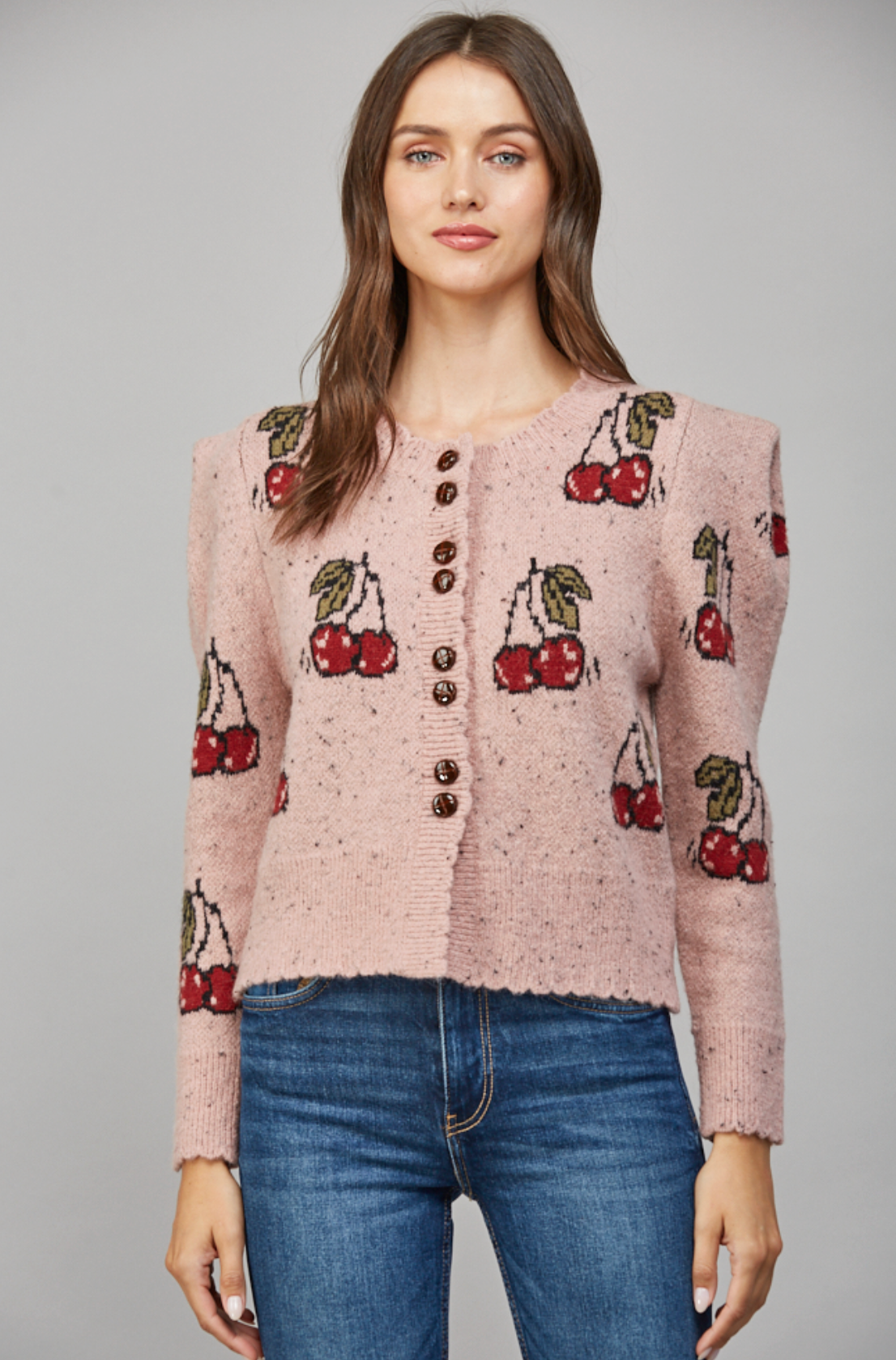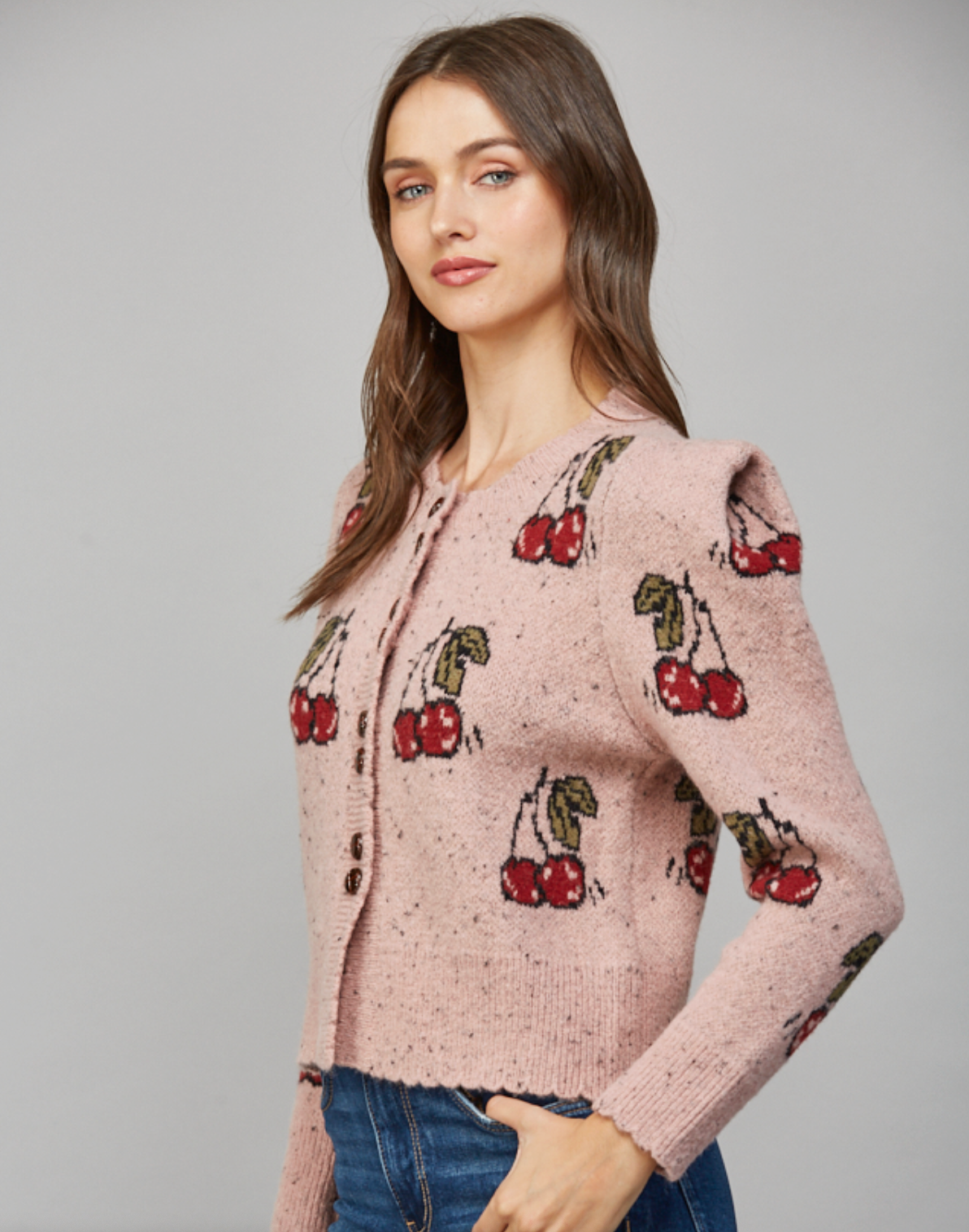 CHERRY MOTIF PUFF SLEEVE CARDIGAN