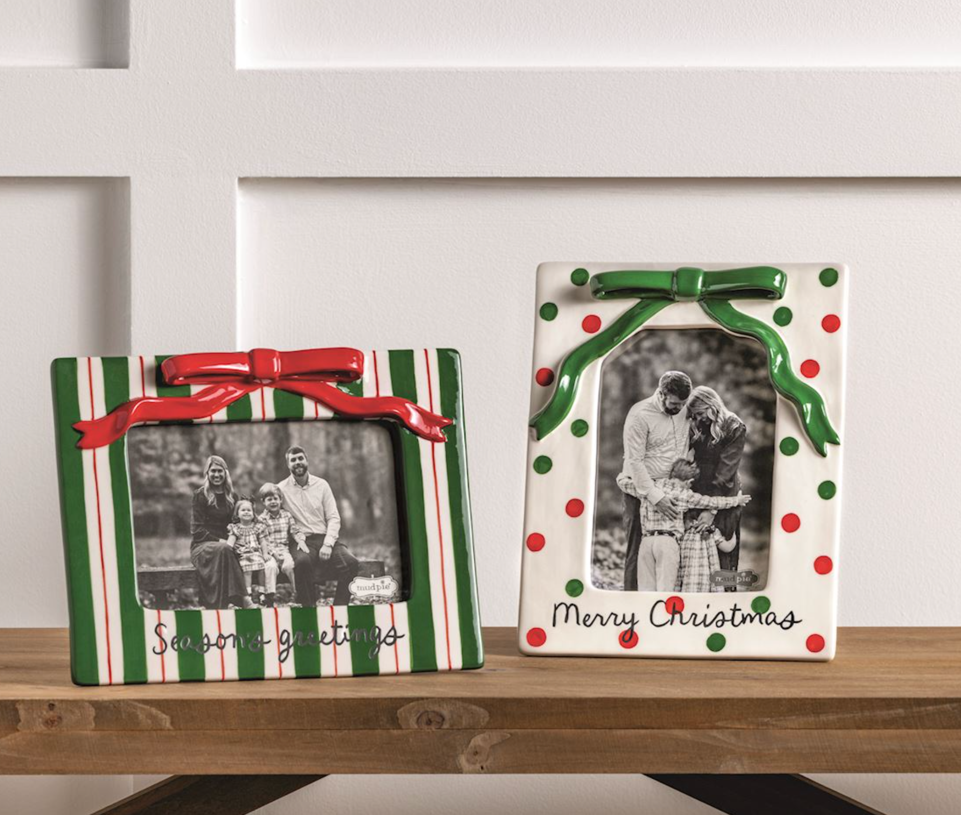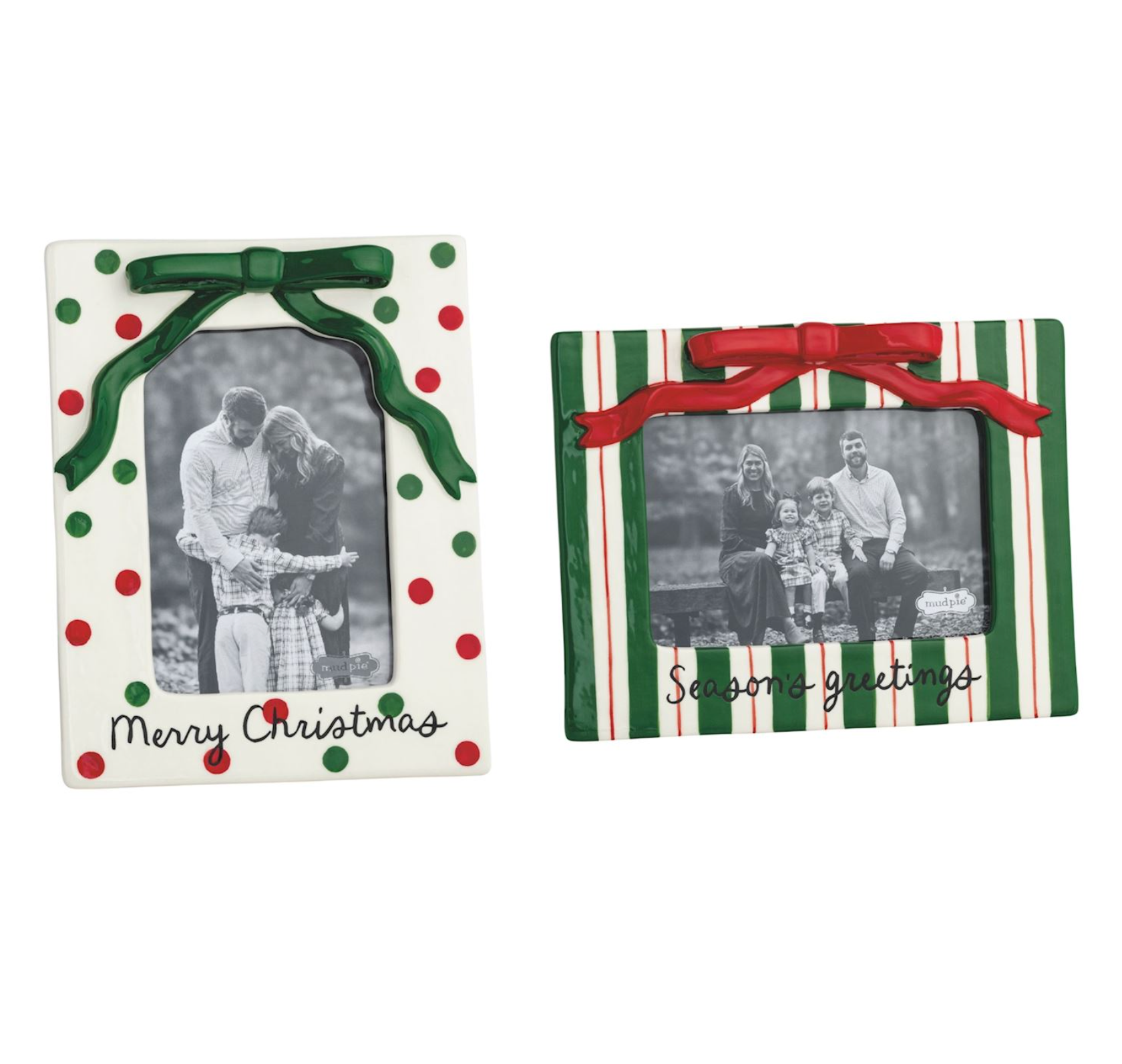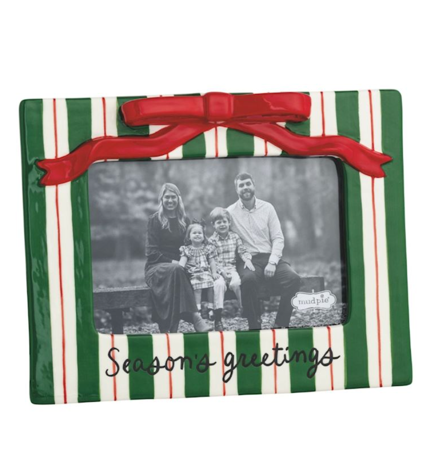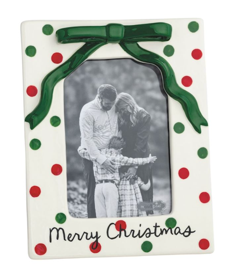 Hand-painted stoneware 4" x 6" frame. Easel back.