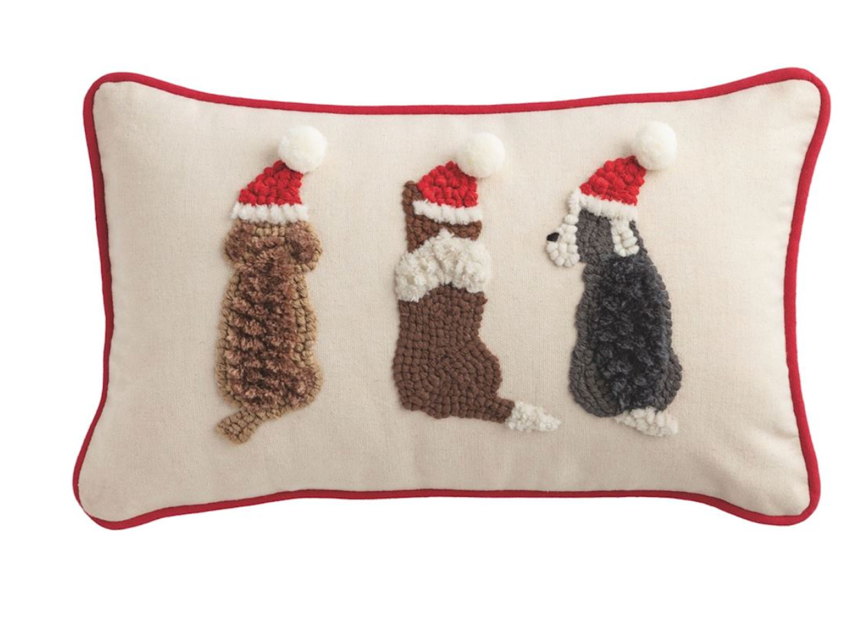 CHRISTMAS DOG HOOKED WOOL PILLOWS