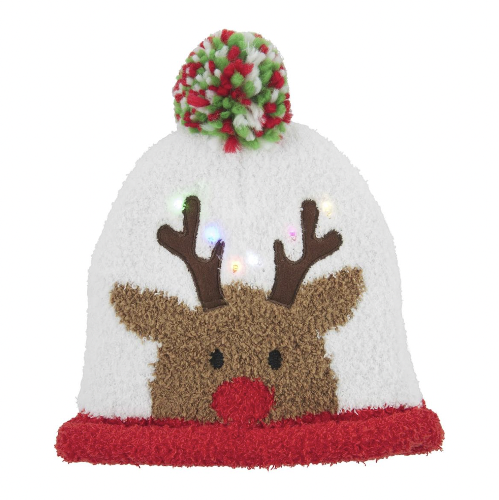 Light-up chenille hat features yarn pom topper. Batteries included. Ages 3+.