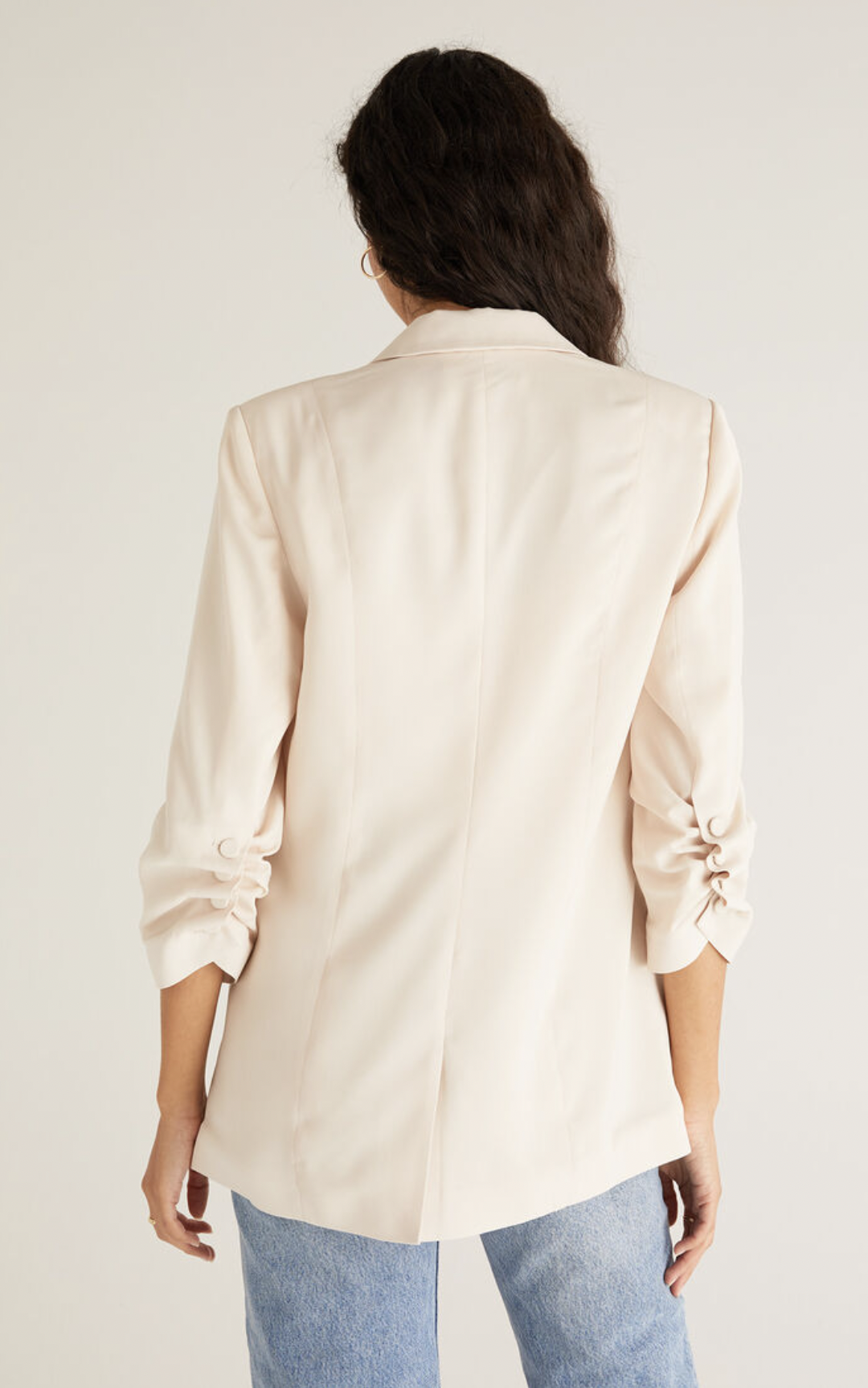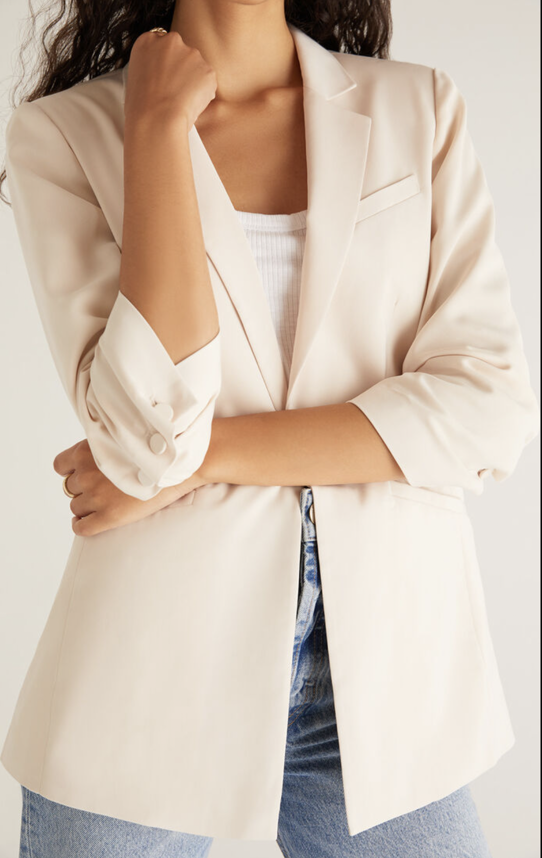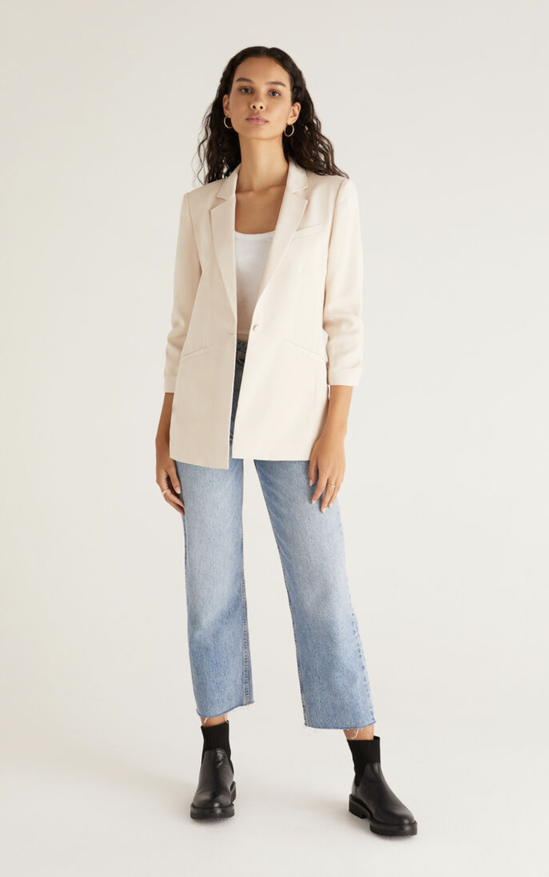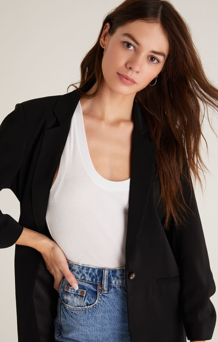 Introducing the Cinema Blazer. Be trend right and look sophisticated without compromising comfort. The ideal item for a cool and confident look. Designed in a matte twill fabric and ready to be paired with denim and a Z SUPPLY essential. Fabric Content: 100% Polyester