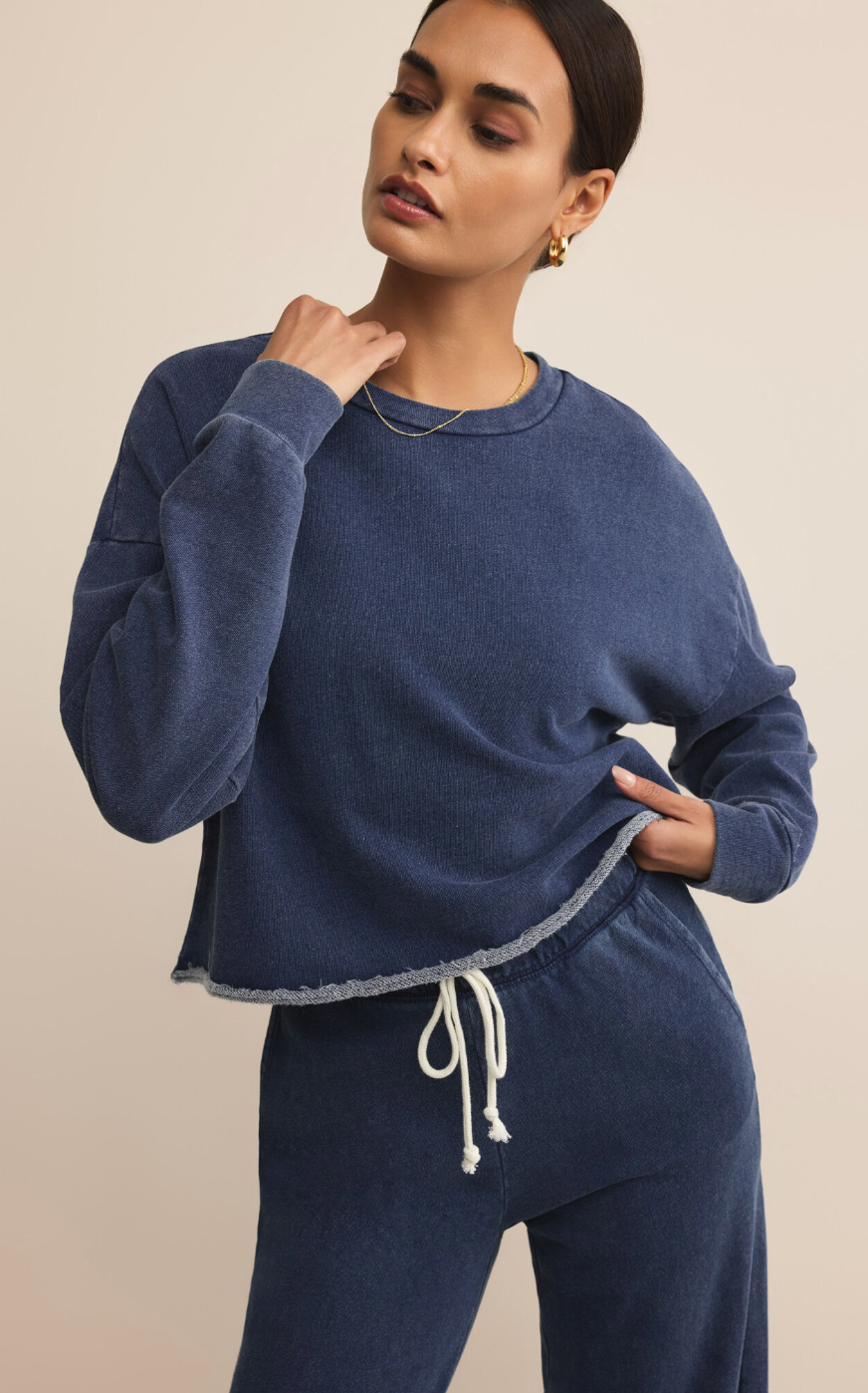 CIRCUIT KNIT DENIM SWEATSHIRT-INDIGO