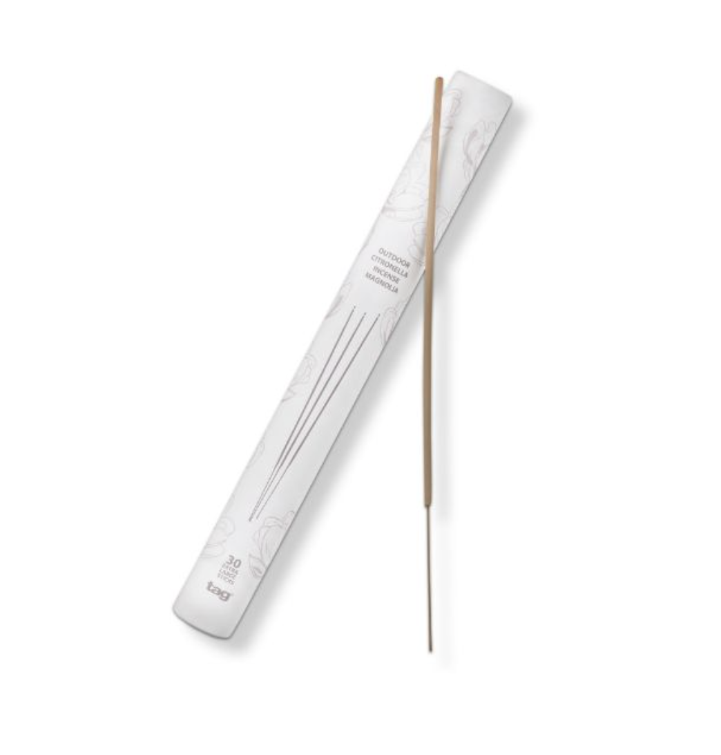 Inspired by the enjoyment of summer nights, this exclusive selection of citronella incense sticks are a trendy way to help set the scene while keeping unwanted bugs at bay. Formulated with a blend of citronella oils and fragrance, each stick will help you enjoy outdoor entertaining for up to 2 hours. Stick upright into the ground, a planter, or a bucket of sand. Set of 30.