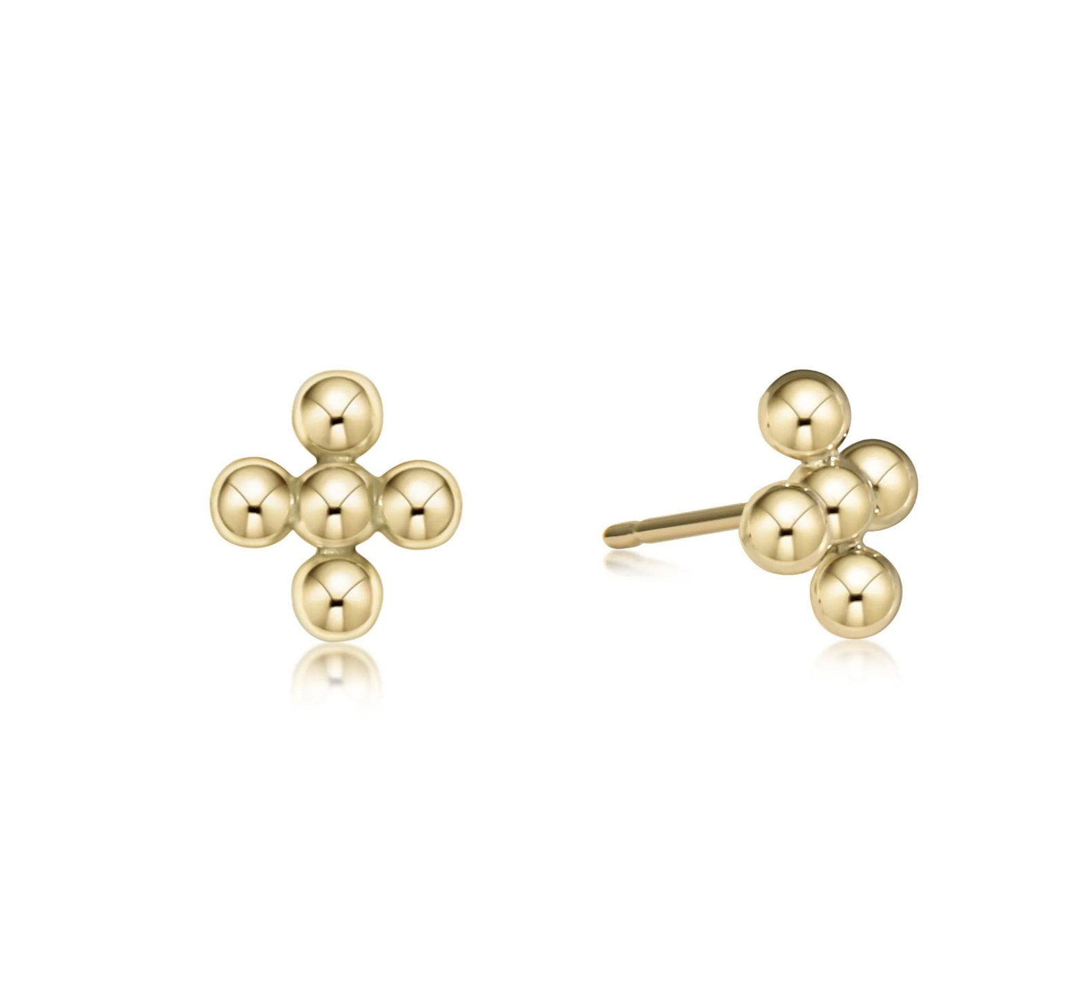 CLASSIC BEADED SIGNATURE CROSS STUD-4MM BEAD GOLD