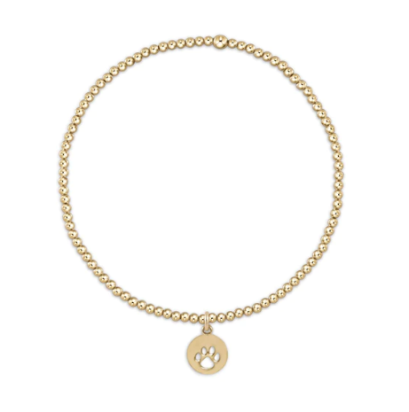 CLASSIC GOLD 2MM BEAD BRACELET-PAW PRINT SMALL GOLD DISC
