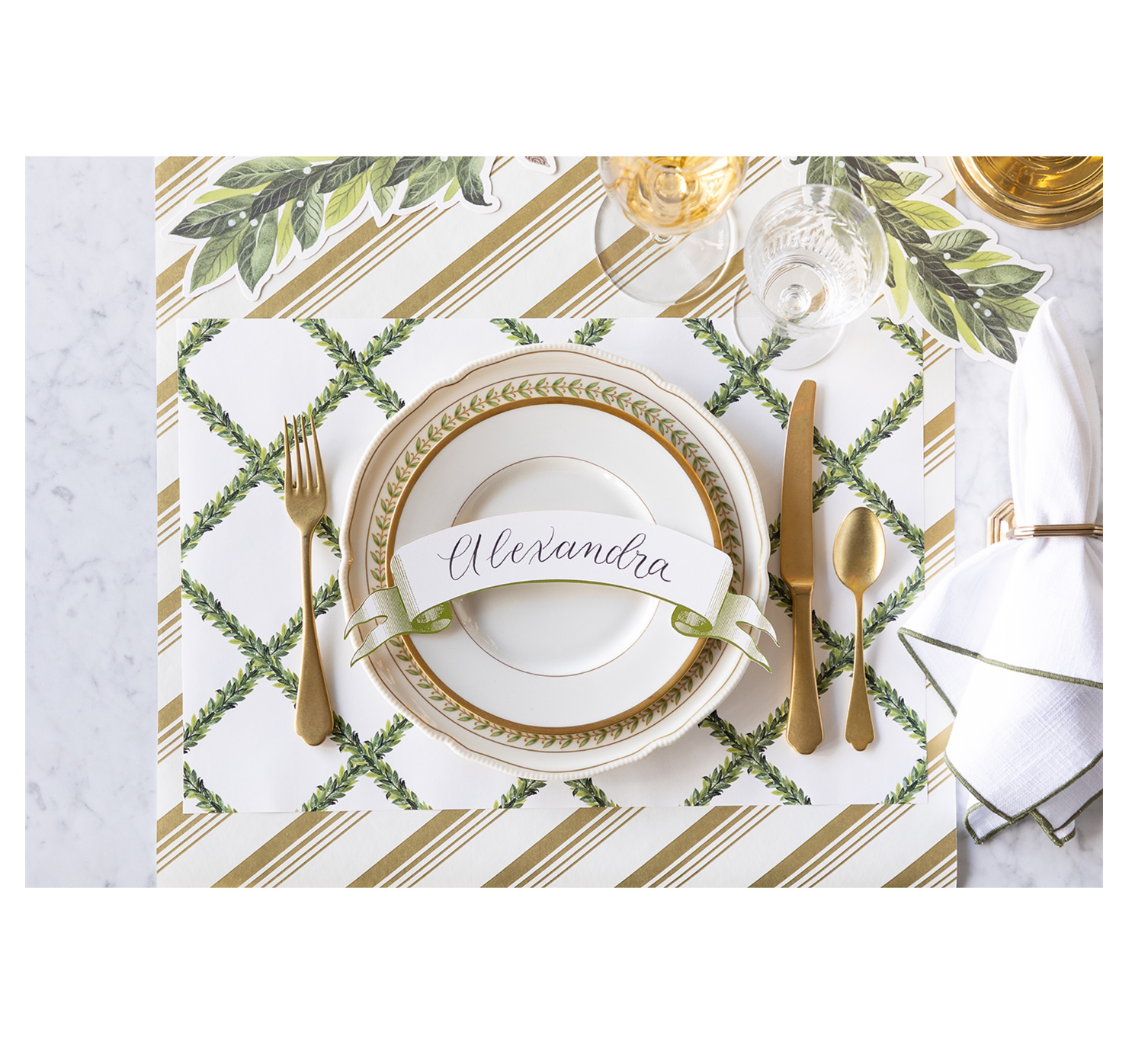 These table banners are the perfect addition to any place setting, functioning as table accents or exuberant place cards. Lay above or on top of the plate, or just adjacent to the setting. You can also write a message on the banner and use in conjunction with a traditional place card. Designed and printed in the USA on FSC certified, recycled content.