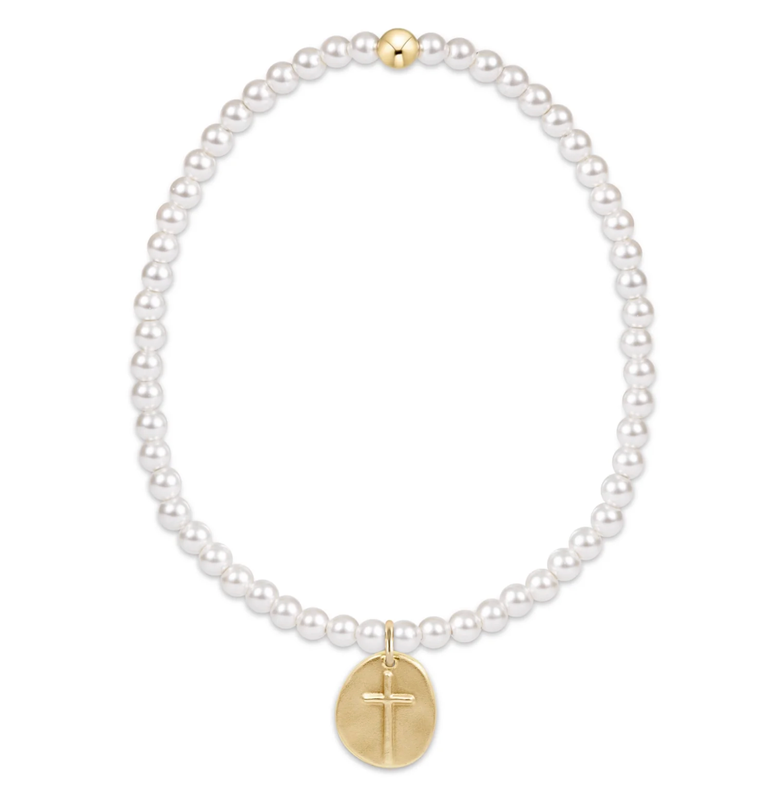 classic pearl 3mm bead bracelet - inspire small gold charm