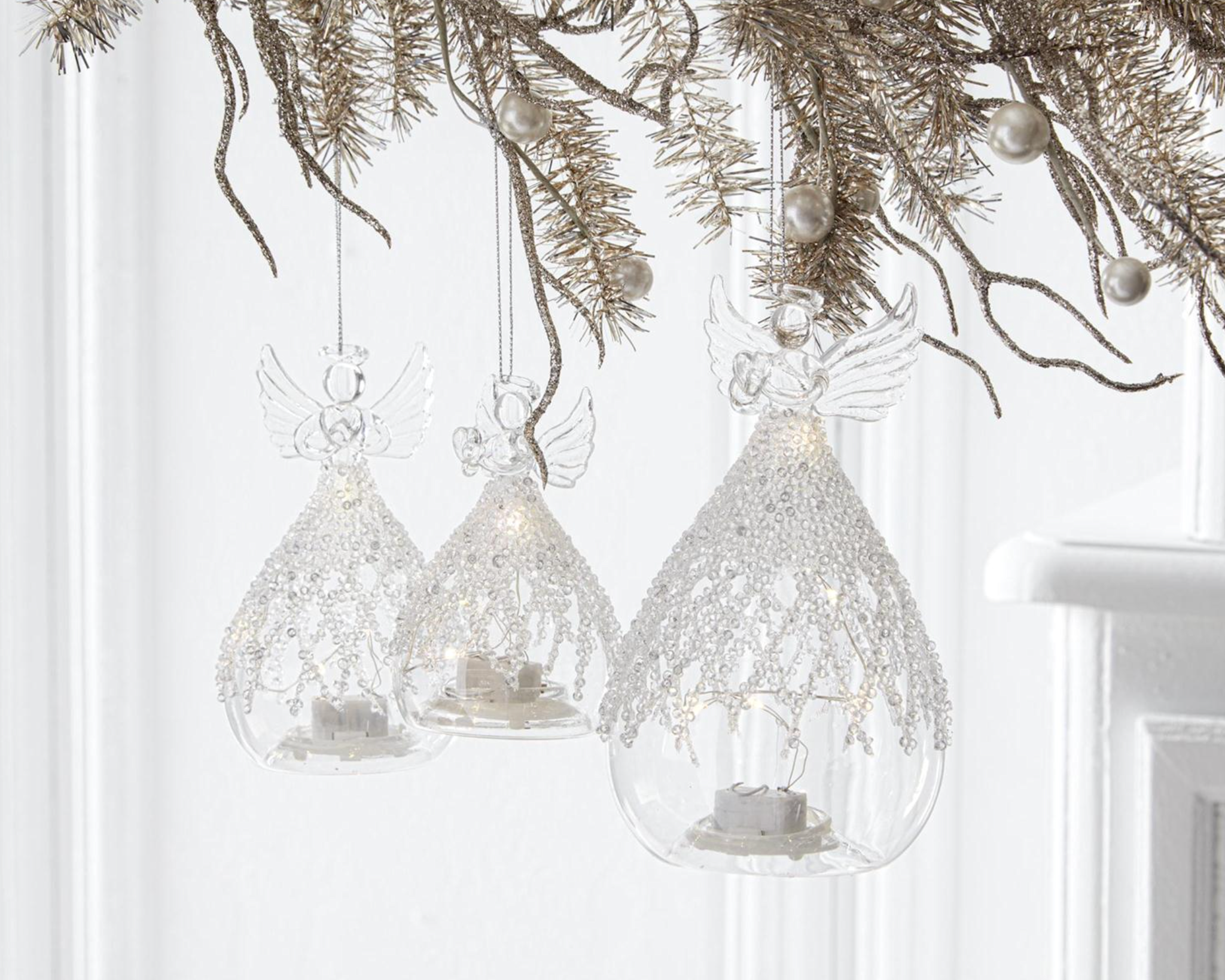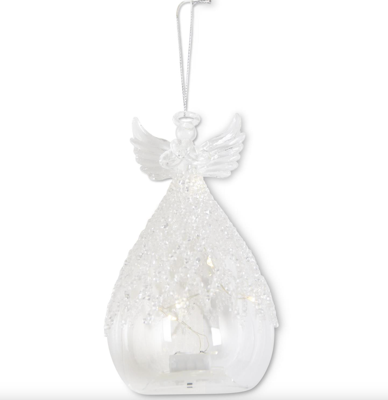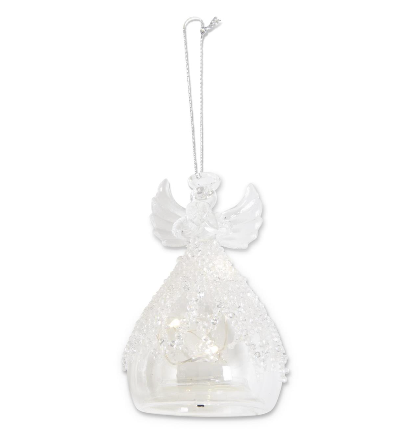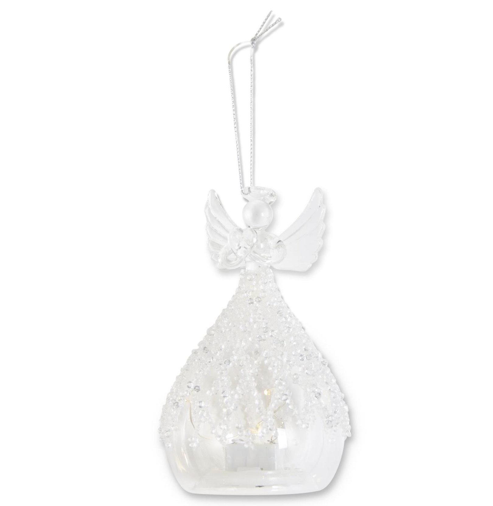 Clear Glass Lattice Bead LED Angel Ornament w/Timer