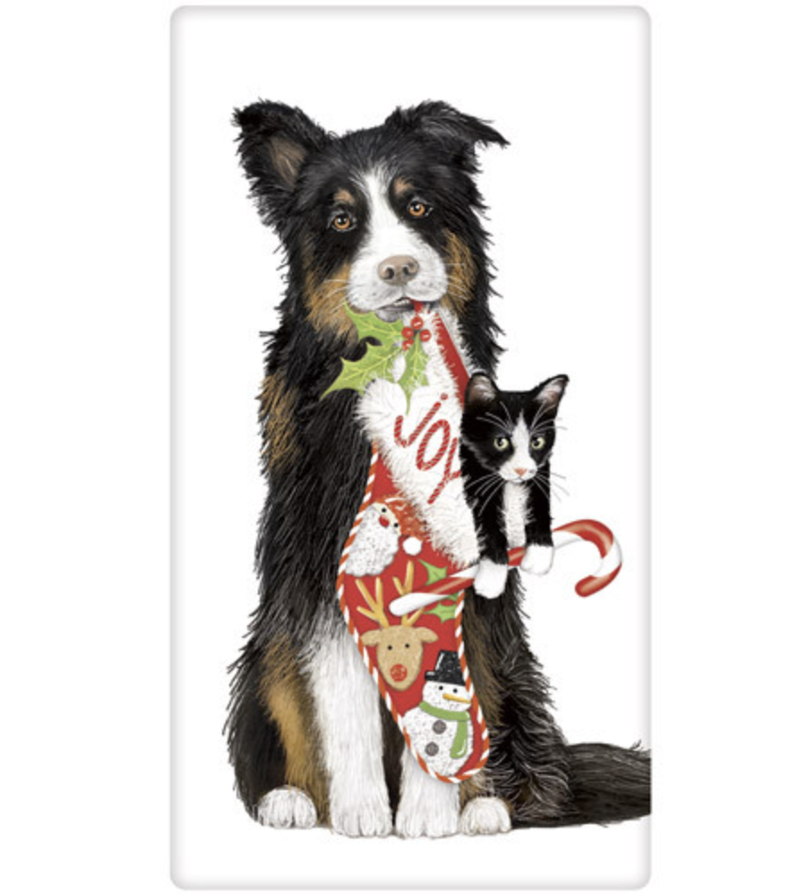 COLLIE CAT STOCKING BAGGED TOWEL