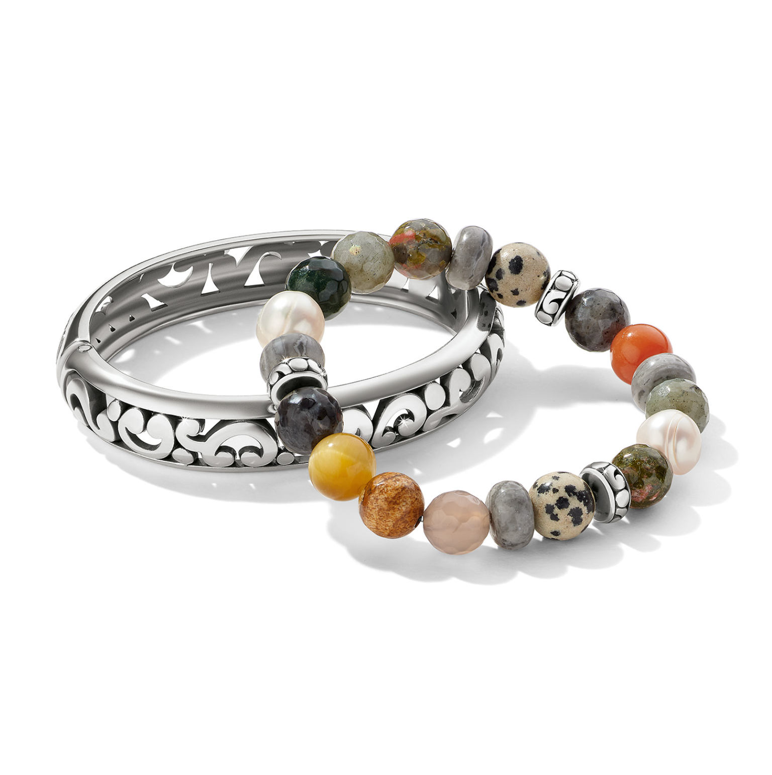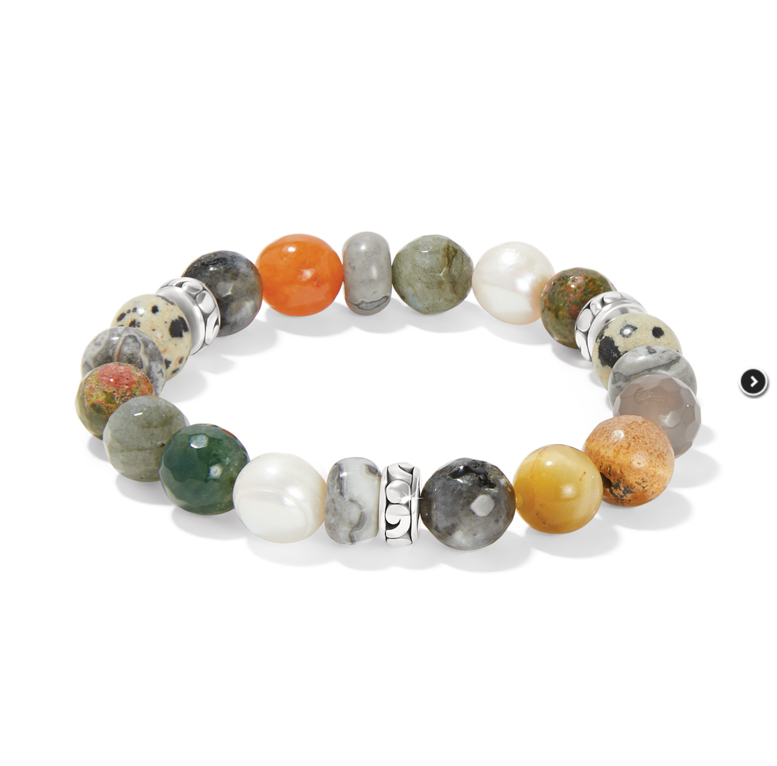 Inspired by earthtones present in the skyscapes, this bracelet has a beautiful palette of semi-precious stone beads that complement every wardrobe color. Because Brighton® has used natural materials, each stone is truly one of a kind and may have variations in color.