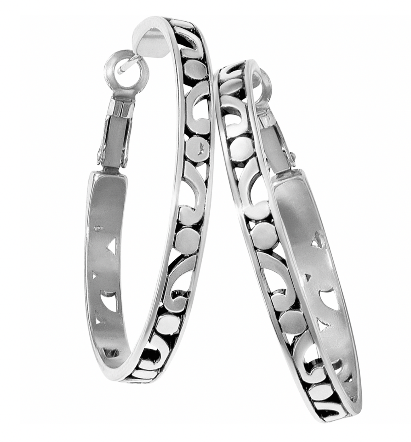 The artful (and ever popular) scrollwork from the Brighton Contempo Collection has been transformed once again, this time onto gorgeous, face-flattering hoop earrings. Inspired by vintage silverwork from Taxco!