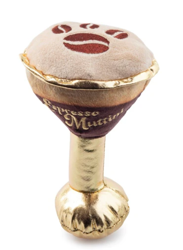Perk up your pup's playtime with the Espresso Muttini! This plush, squeaky dog toy is the perfect blend of chic and charm. Let your furry friend indulge in the trendiest play accessory inspired by the coffee culture.