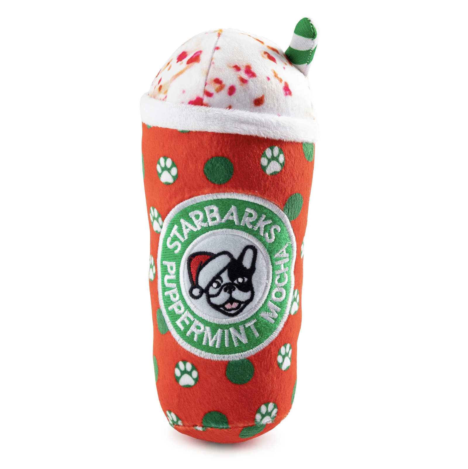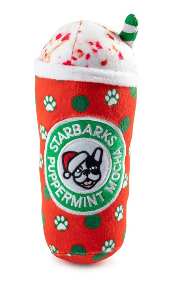 Add jolly to your Collie and cheer to your Chihuahua with this Holiday Dots Cup toy! Just added to the Starbarks Puppermint Mocha Collection, this plush toy is just as fun as it is festive thanks to the classic holiday colors, a plush exterior, faux whi
