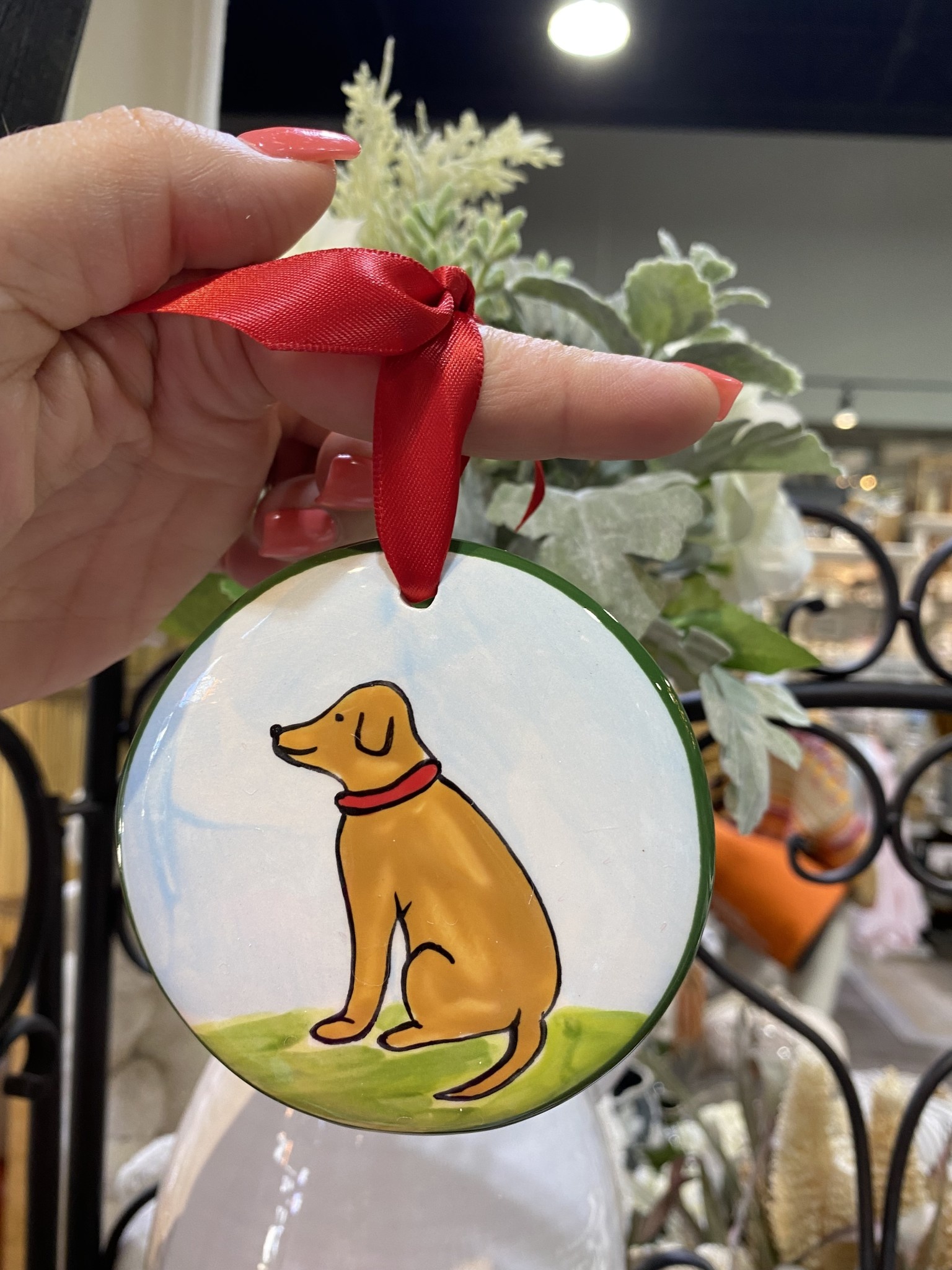 YELLOW DOG ORNAMENT- PERSONALIZABLE