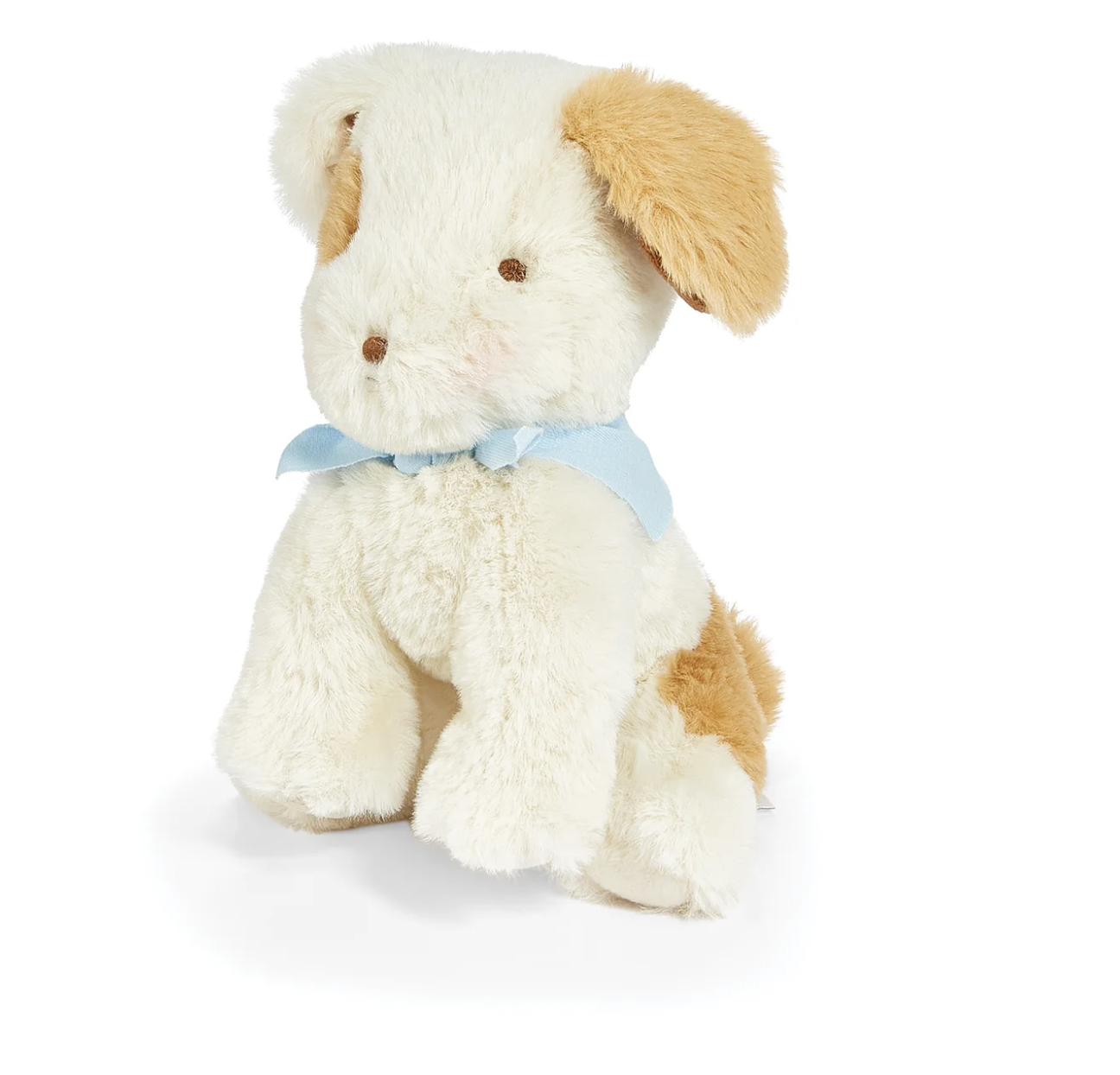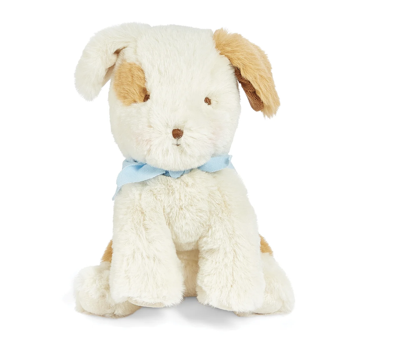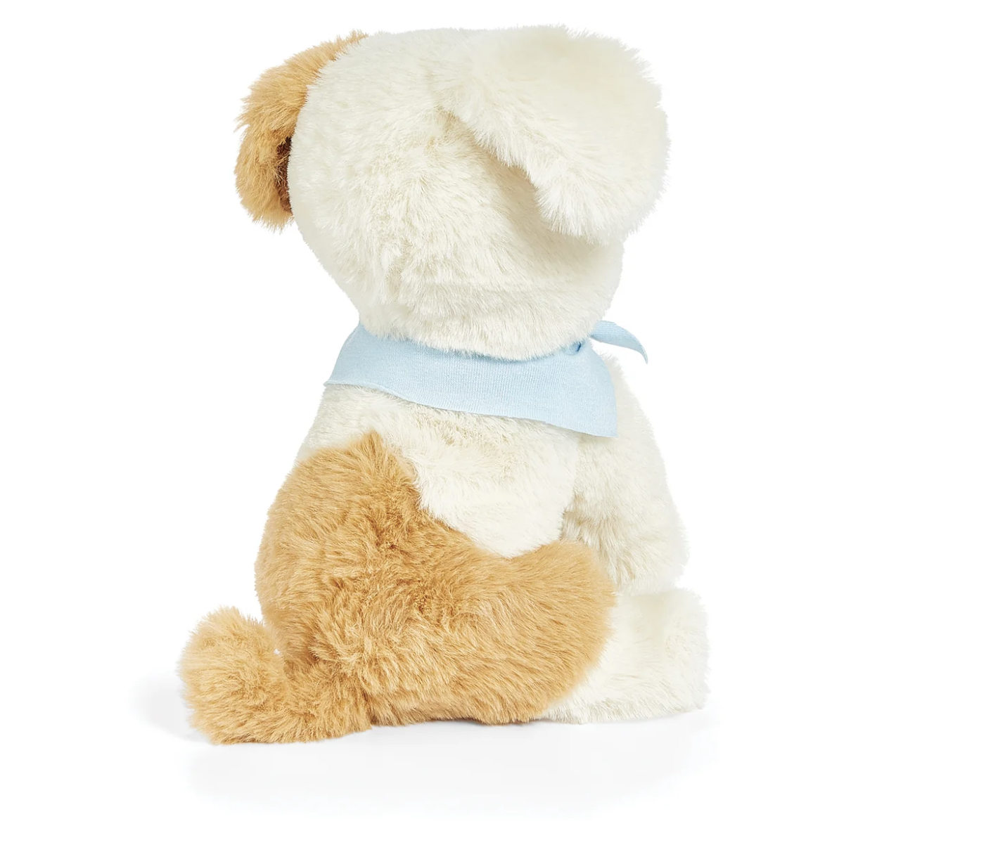 He has soft nibble fur in warm browns with mocha features. He comes adorned in his favorite blue sailor collar. This Skipit the Pup stuffed animal has a hand-embroidered face and pink cheeks, snuggly soft and ready for adventures!