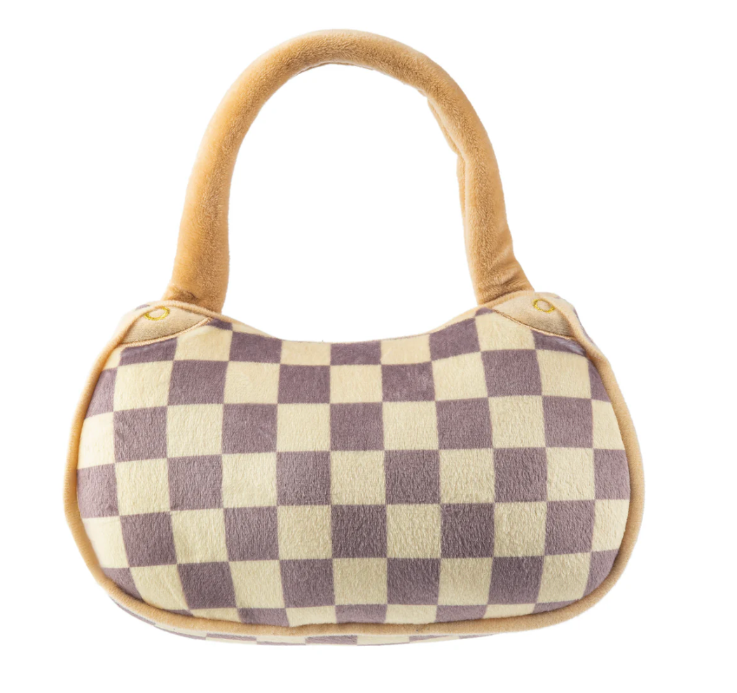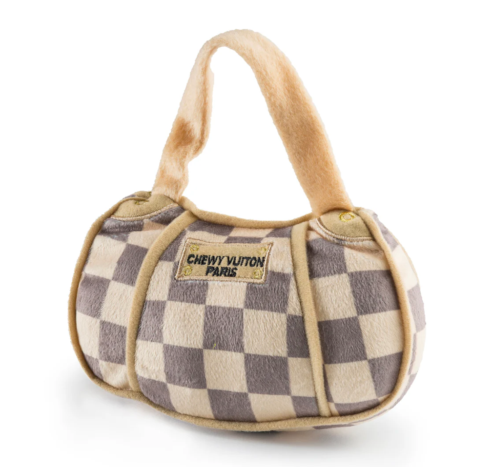 For casual fashion à la mutt, we offer the Chewy Vuiton Handbag toy! Your dog will feel absolutely furbulous wherever they go with this classic checkered handbag in their jaws.