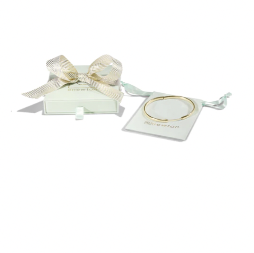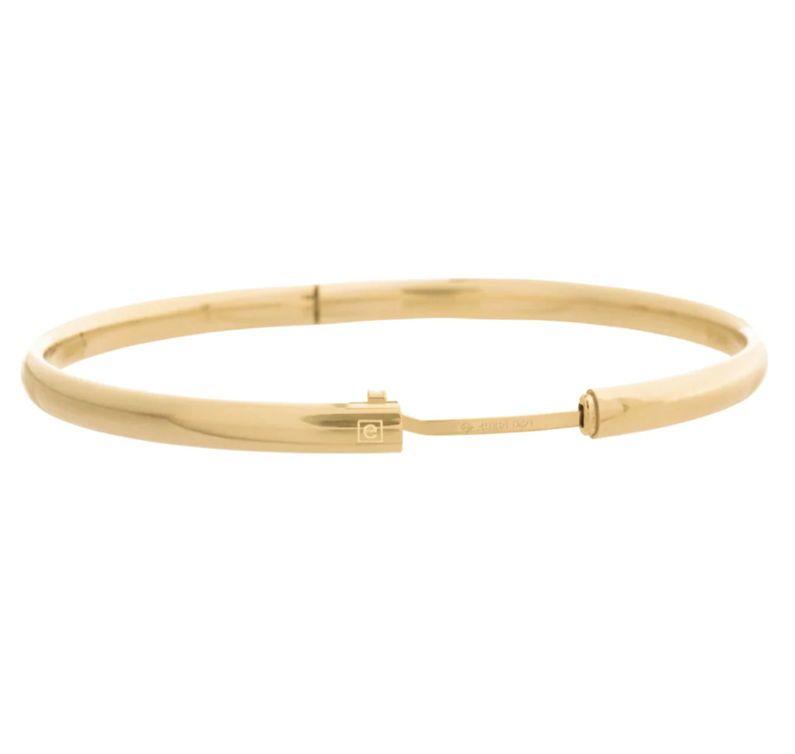 - A 14kt gold-filled bangle with a slide hinge lock clasp