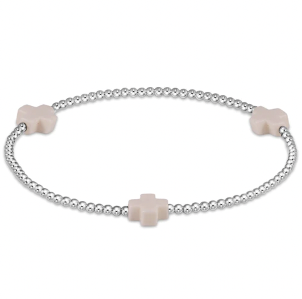 SIGNATURE CROSS STERLING PATTERN 2MM BEAD BRACELET - OFF-WHITE