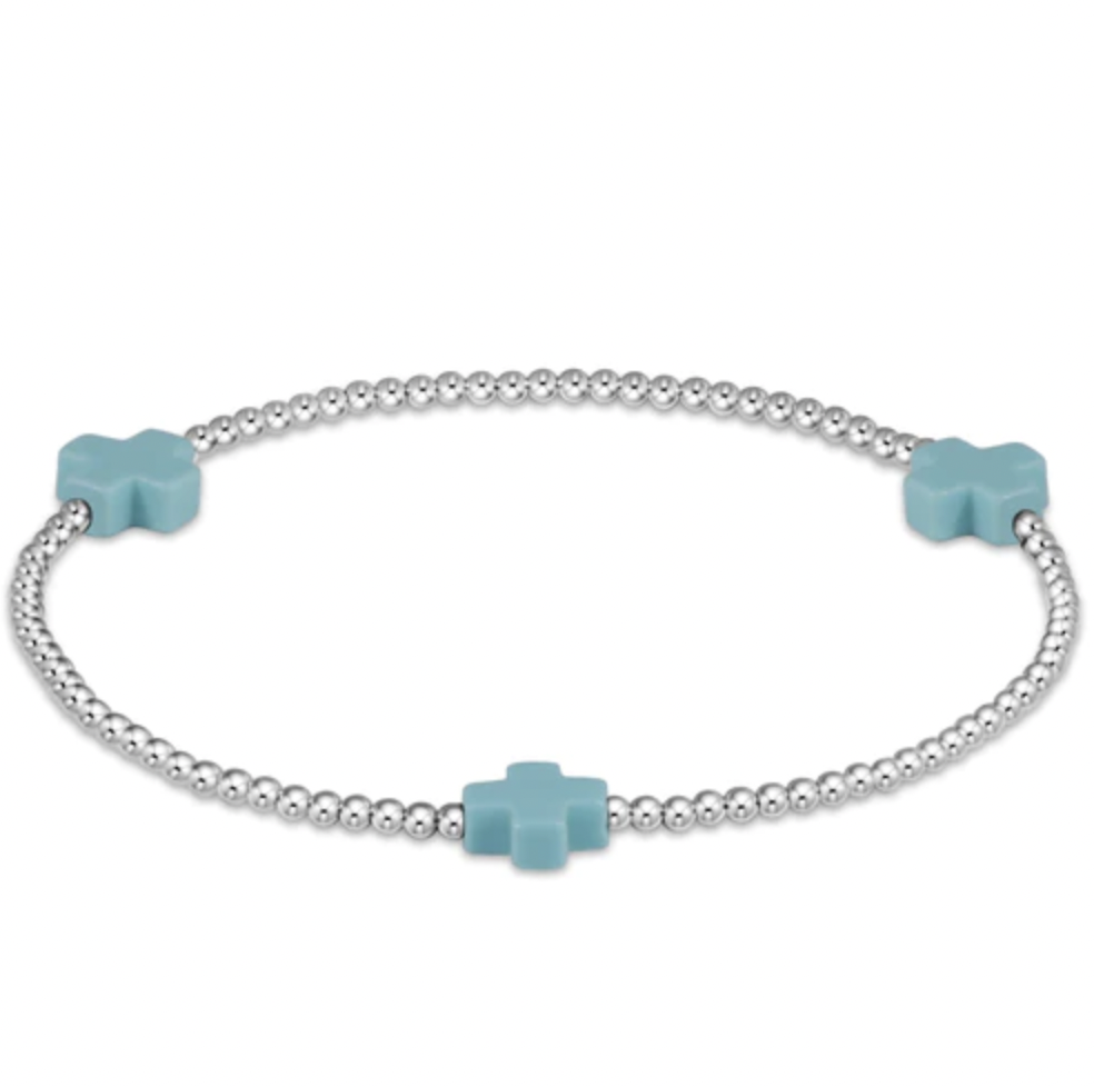 Signature Cross Sterling Pattern 2mm Bead Bracelet - Turquoise