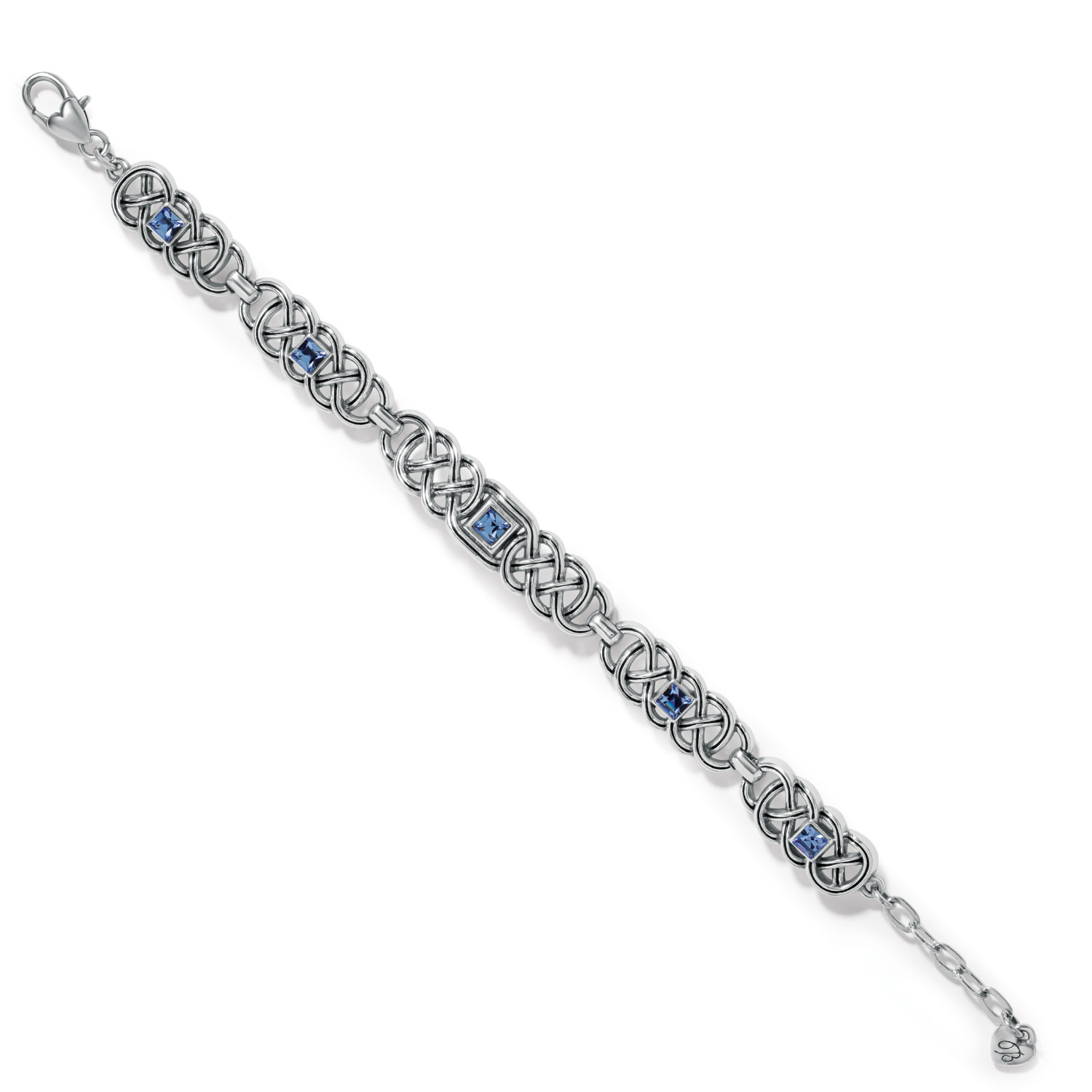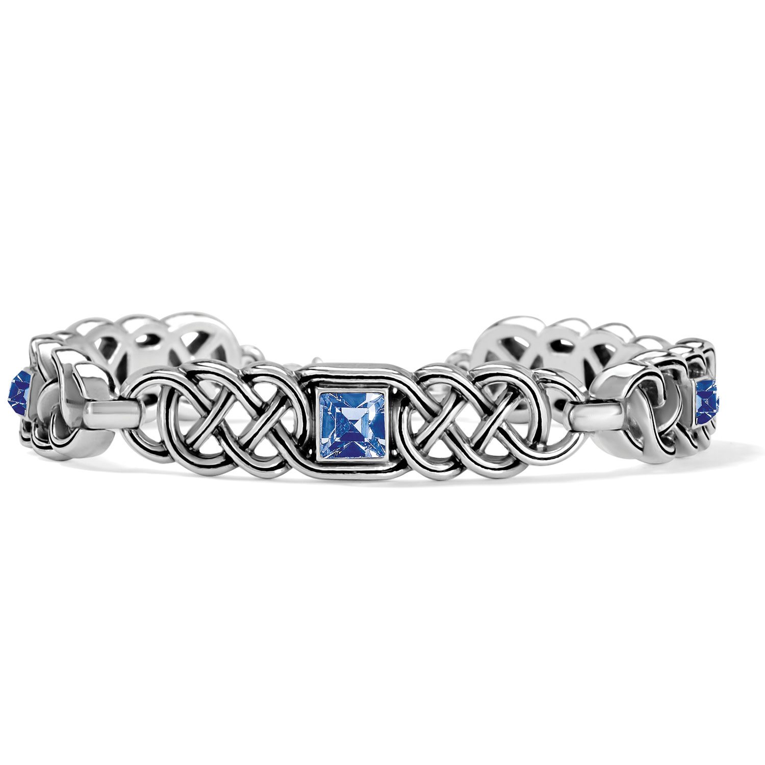 A touch of sparkle decorates the silver interlaced Celtic weave design bracelet accented with square crystals – giving it more versatility to dress up, layer or mix with other silver pieces for an eclectic modern look.