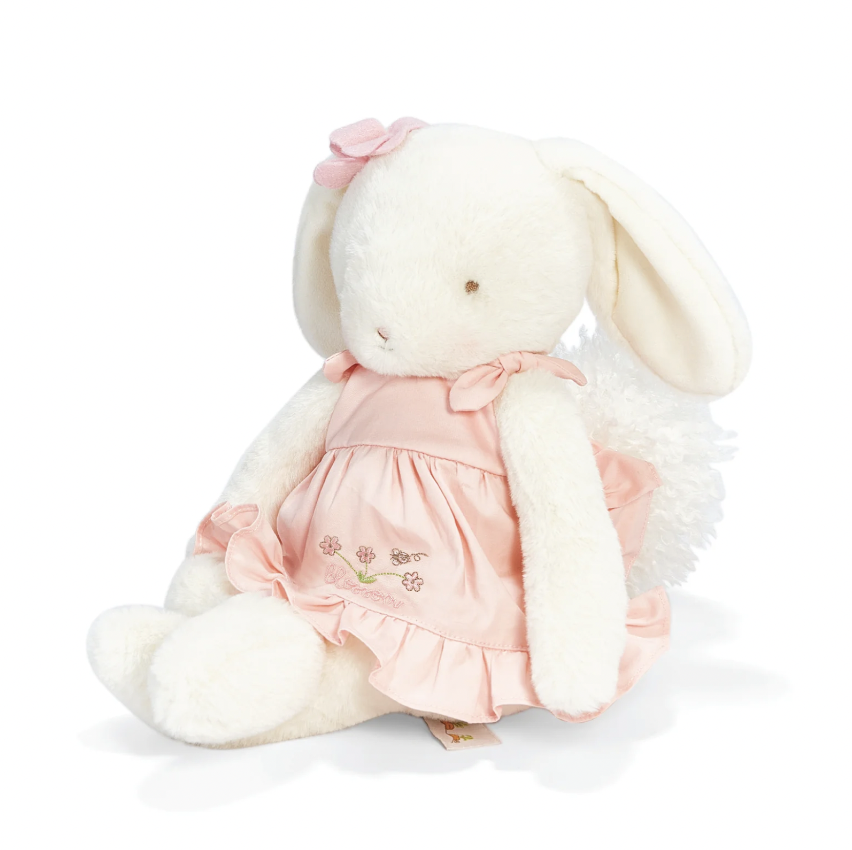 Garden Blossom, an adorable bunny straight from the heart of a blooming garden. Garden Blossom is dressed in a sweet pink dress adorned with floral embroidery, and she keeps a pretty pink flower tucked ever so charmingly in her floppy ear.
