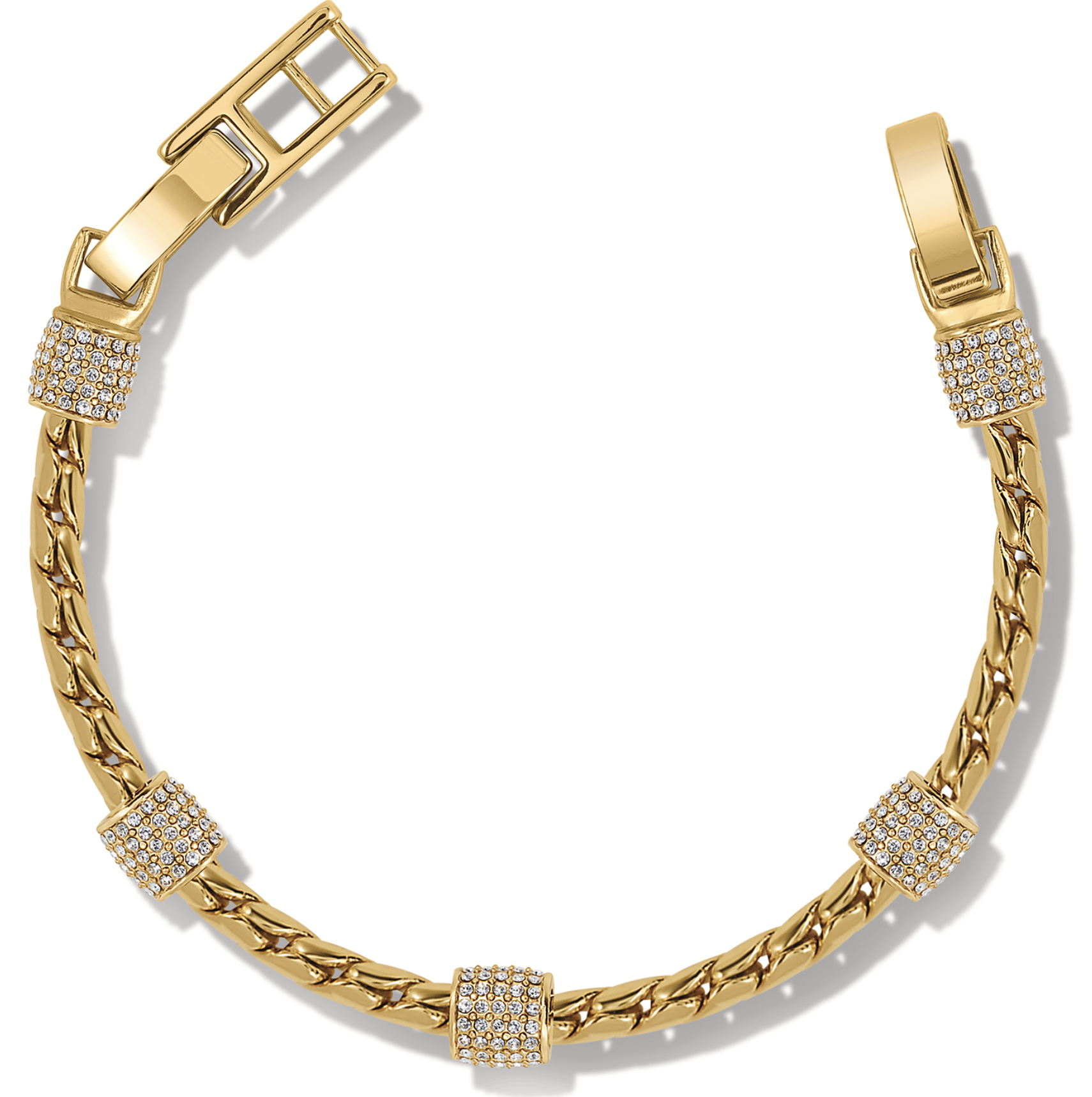 The chain-and-stations design features a clasp that lets it function like a soft bangle...you can adjust the fit.