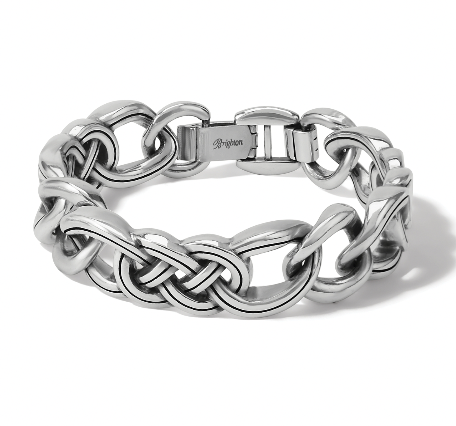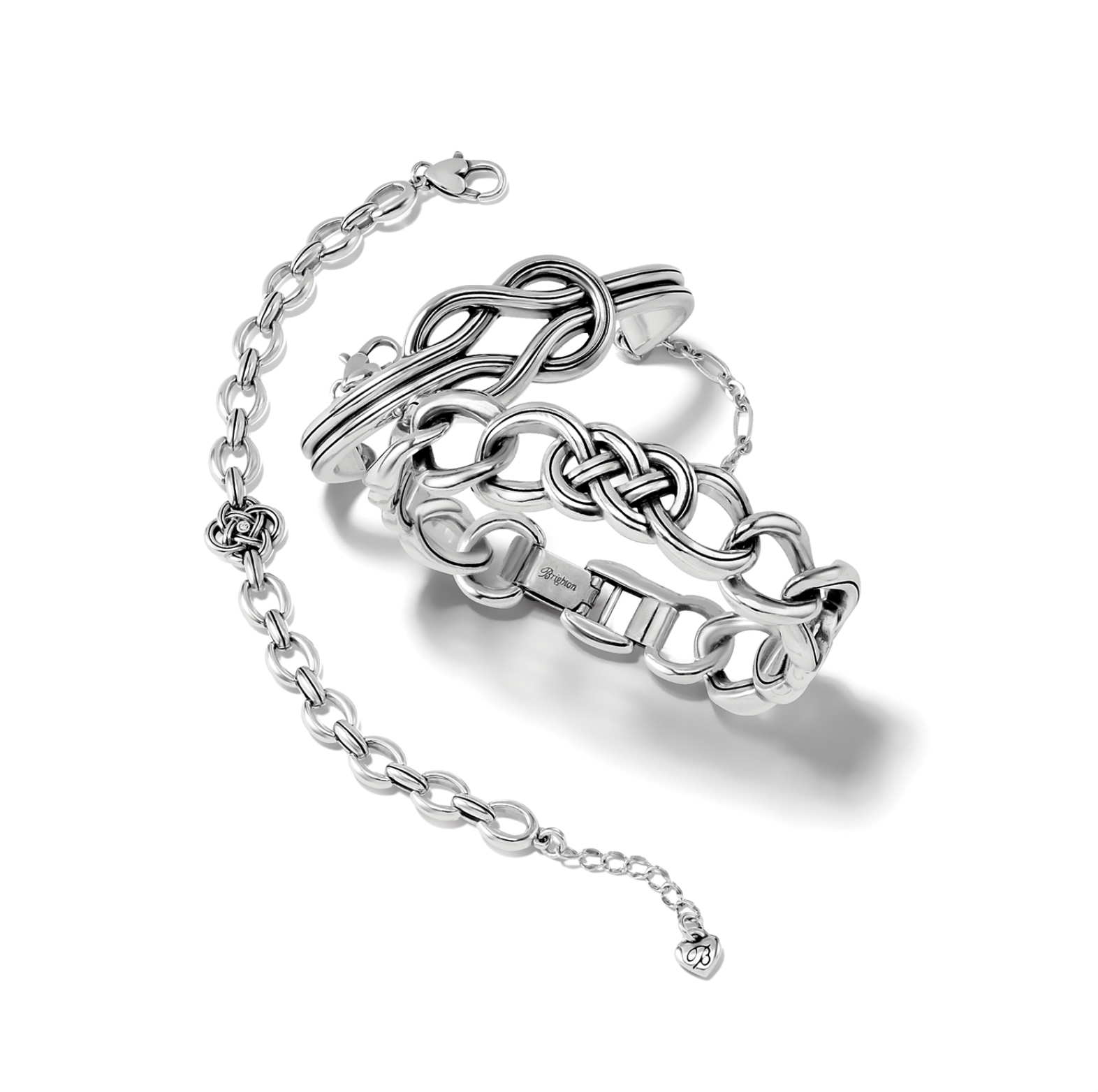 A series of never-ending knots, symbolizing love and friendship, repeat three times, encircling your wrist in this elegant motif.