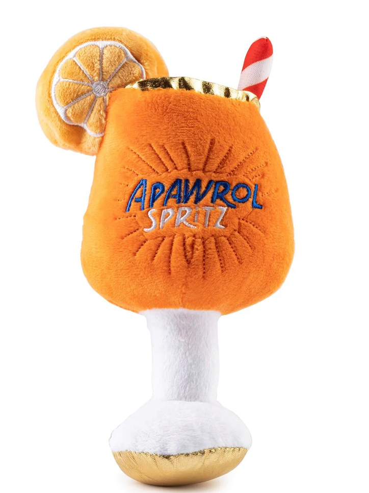 Let your pup live ‘la doggy dolce vita’ with their very own tangerine-colored apawritivo! The Apawrol Spritz plush toy features a soft, plush texture–just how your pup likes it. Plus, the inner squeaker will make their late-afternoon chew on the pup-piazz