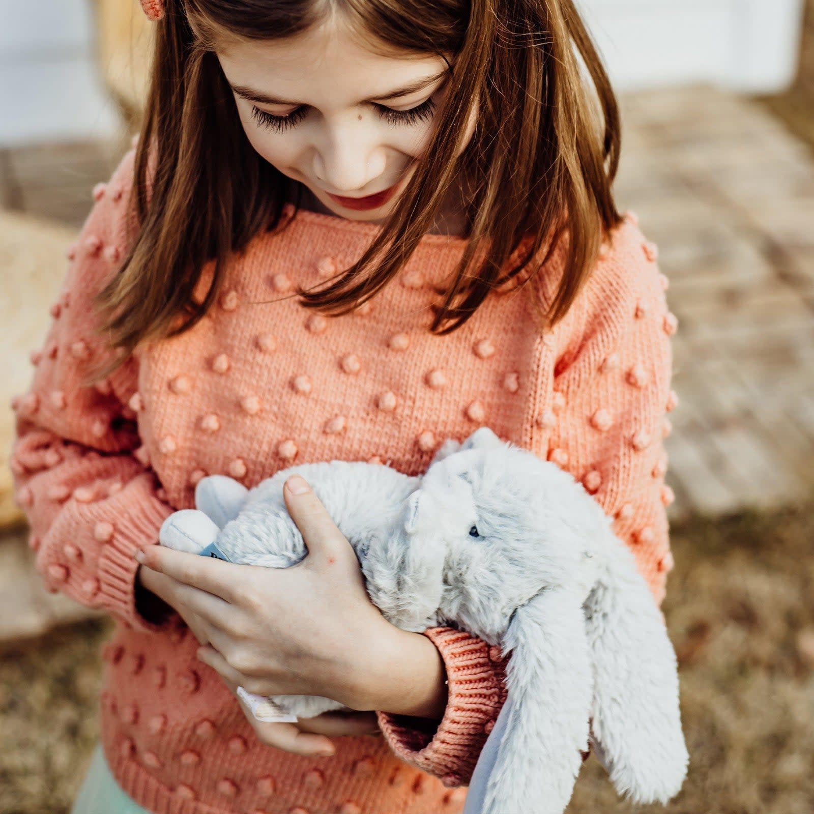 This little stuffed bunny is ear-resistible indeed, with luxuriously soft baby pink fur, and super-soft long ears. Complete with a sweet embroidered face and rosy pink cheeks perfect for cuddling.