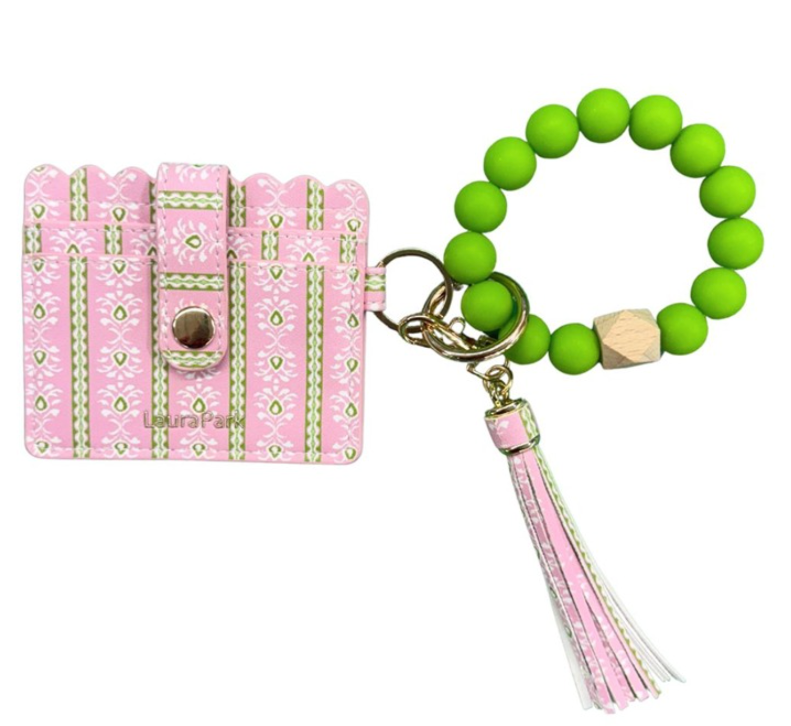 ROSEMARY STRIPE PINK KEYCHAIN WRISTLET WALLET
