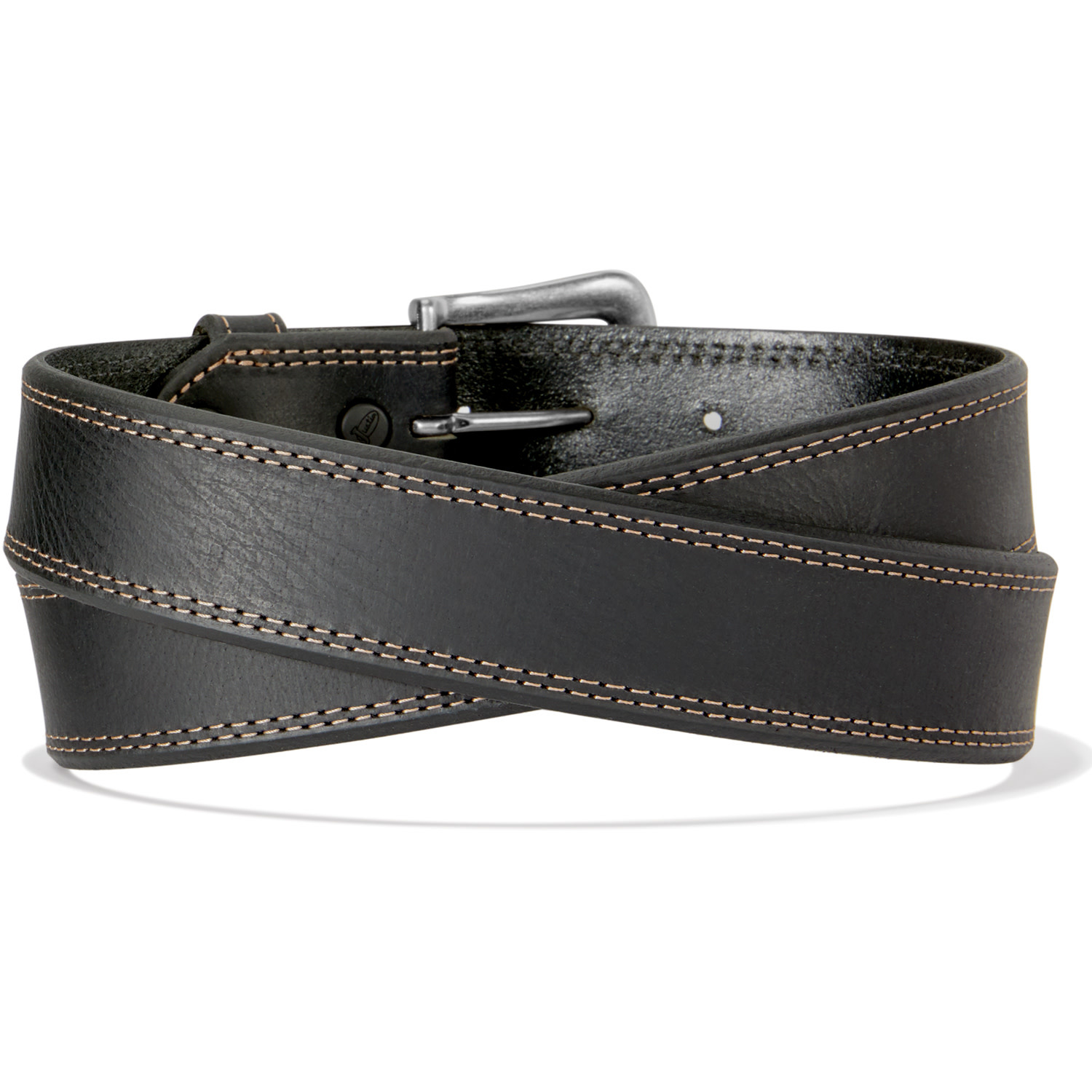 Naturally milled vegetable tanned leather with double-stitching detailing and a brass finished buckle make this belt as great-looking as it is durable.