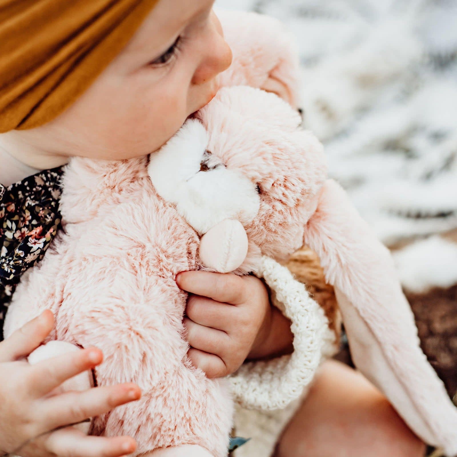 This little stuffed bunny is ear-resistible indeed, with luxuriously soft baby pink fur, and super-soft long ears. Complete with a sweet embroidered face and rosy pink cheeks perfect for cuddling.