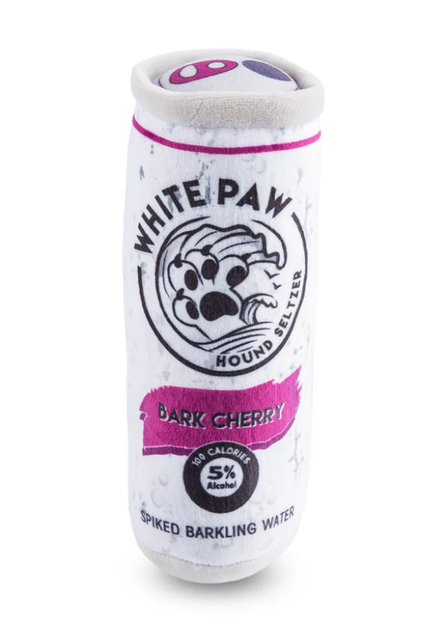 Your pup deserves a cold one after a long walk! Give your furry friend a fizzy refreshment by cracking open some Spiked Barkling Water with the White Paw Bark Cherry Hound Seltzer Plush toy! The satisfying squeaker inside will delight your doggy for hours on end.