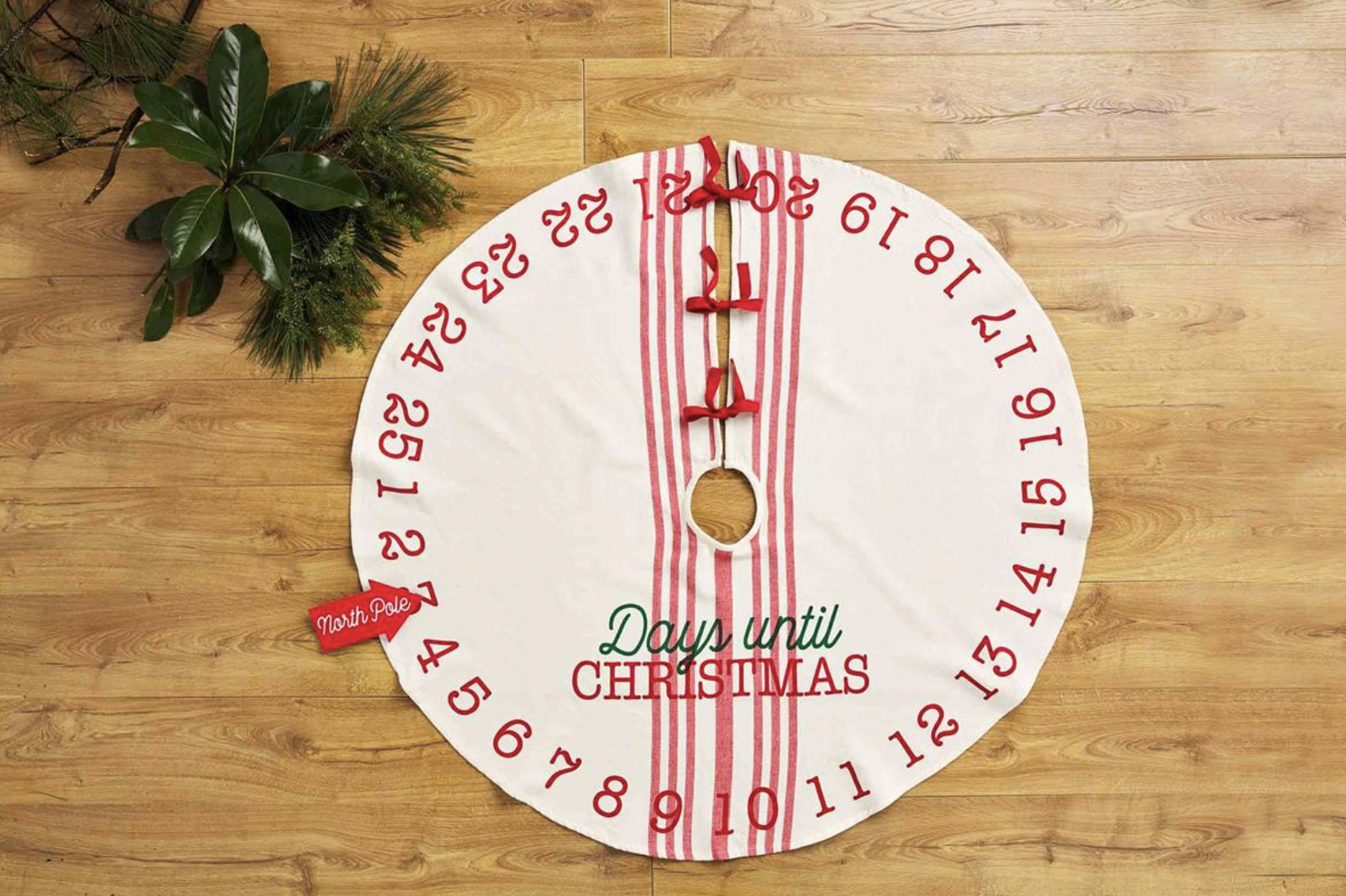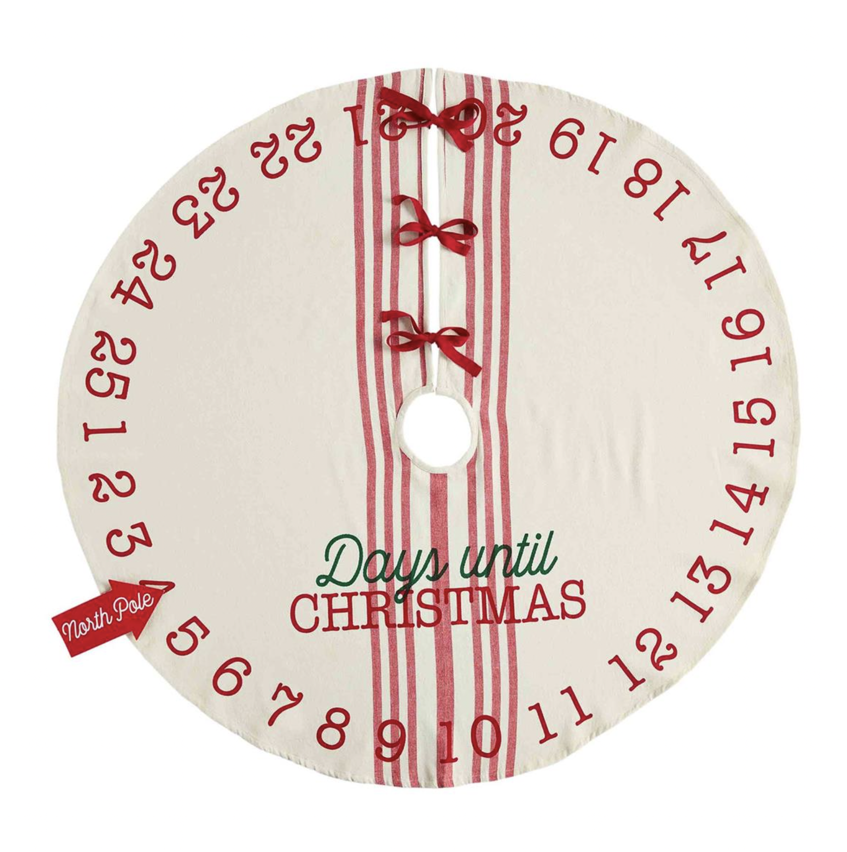 Grainsack tree skirt features movable felt tag and clothespin to countdown the days until Christmas.